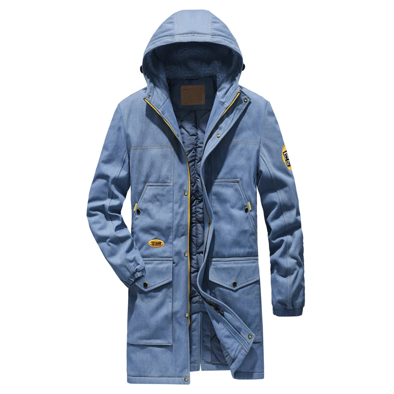 Модная мужская джинсовая куртка 2019, зимняя мужская Толстая длинная парка, пальто в английском стиле, высококачественные ветрозащитные зимние мужские куртки 4XL