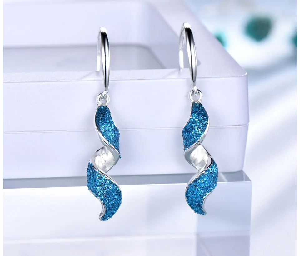 Женские серьги-подвески из серебра 925 пробы с синими блестками