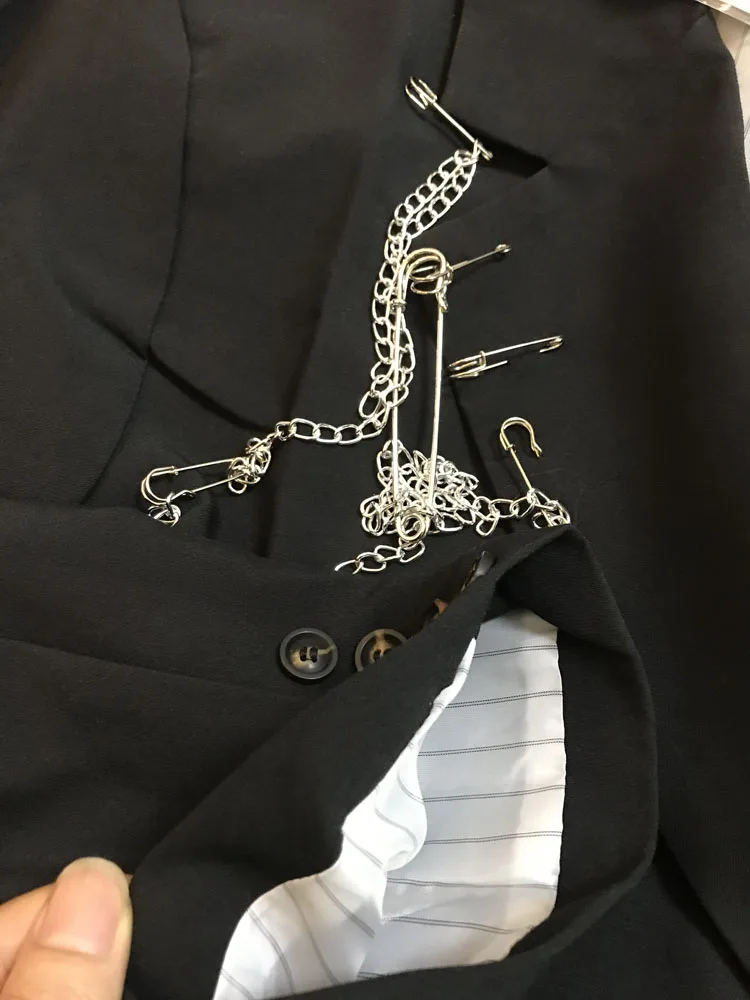 Пиджак мужской с металлической цепочкой, уличная одежда в стиле хип-хоп, готический свободный черный пиджак в стиле панк, Молодежный повседневный костюм