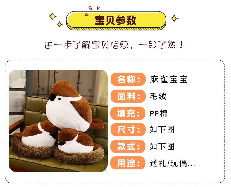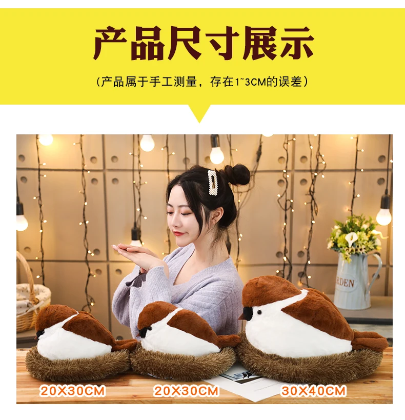 1 шт. Симпатичные реалистичные плюшевые игрушки в виде птиц воробьи, мягкие куклы, подушка для детей, детские игрушки, подарок на день рождения для мальчиков и девочек