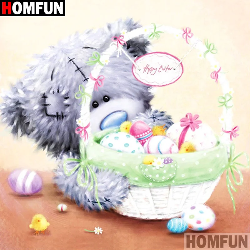 Алмазная живопись HOMFUN, вышивка крестиком Медвежья корзина, 5D алмазная вышивка сделай сам, полная выкладкакруглая картина, A27088