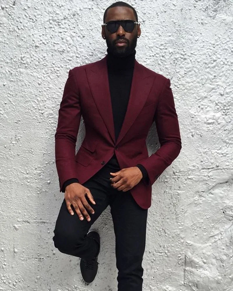 Комплект из 2 предметов на заказ, вечерние Мужской костюм с лацканами (пиджак бордового цвета + черные брюки), мужские свадебные костюмы