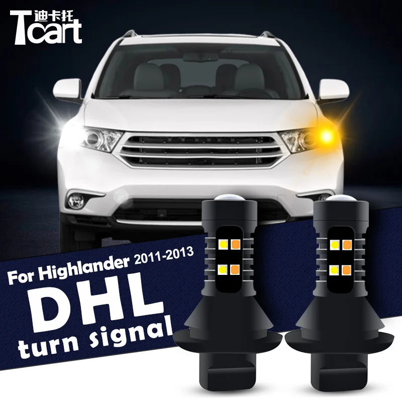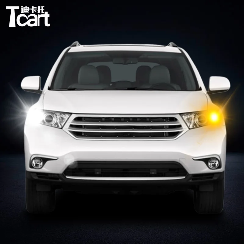 Дневные ходовые огни для Toyota highlander, указатели поворота, Автомобильные Светодиодные ДХО 7440 t20, аксессуары 2011 2012 2013