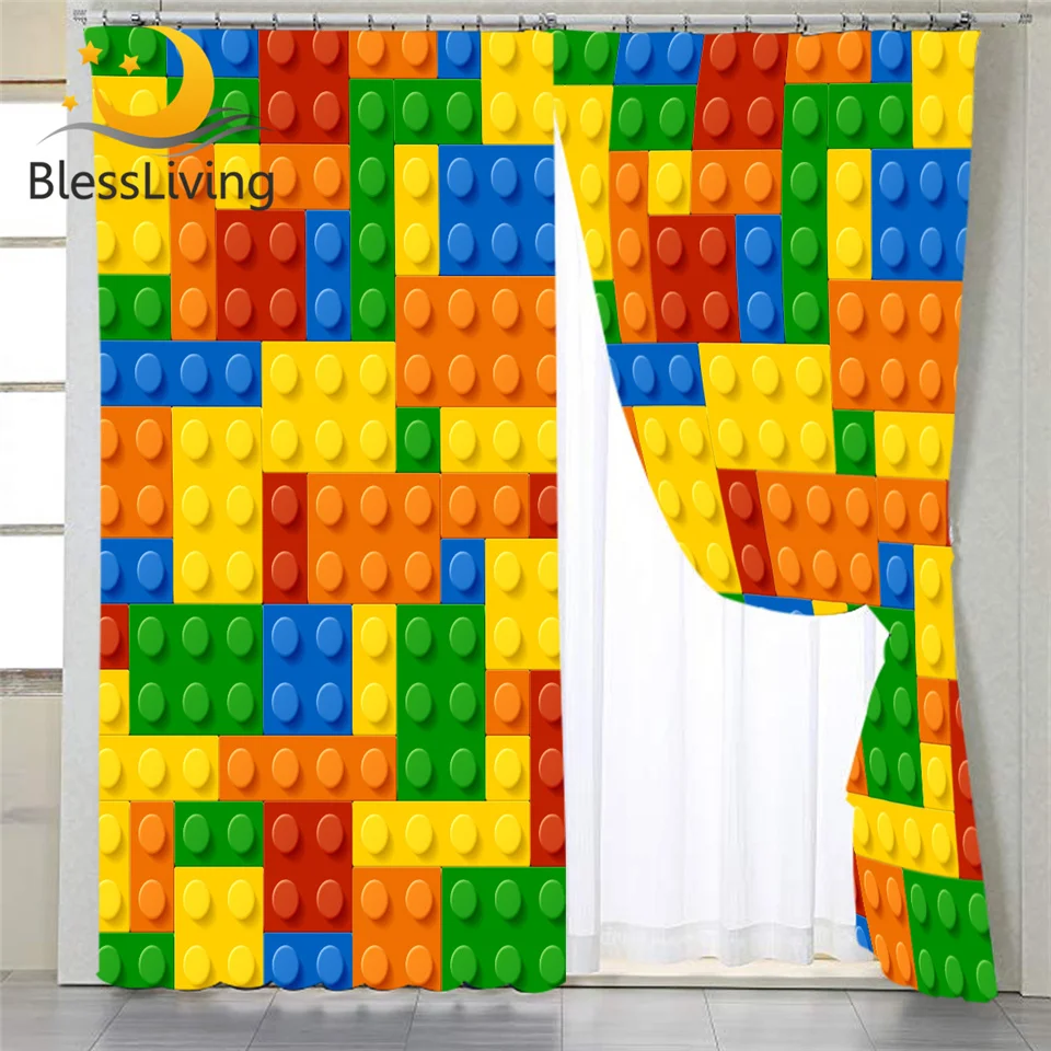 Конструктор с игрушками и принтом, занавеска в горошек для гостиной, занавеска для детской, спальни, цветные кирпичи, игровые шторы, 1 шт.