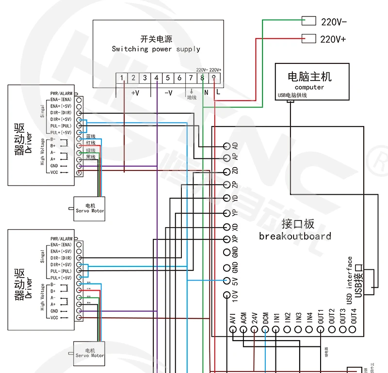 Электронный комплект фрезерного станка с ЧПУ, 4 драйвера DM542 + 4 ...