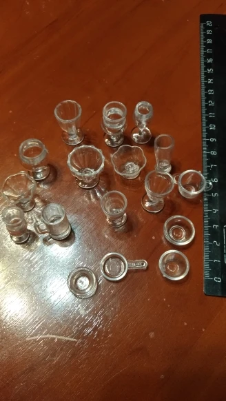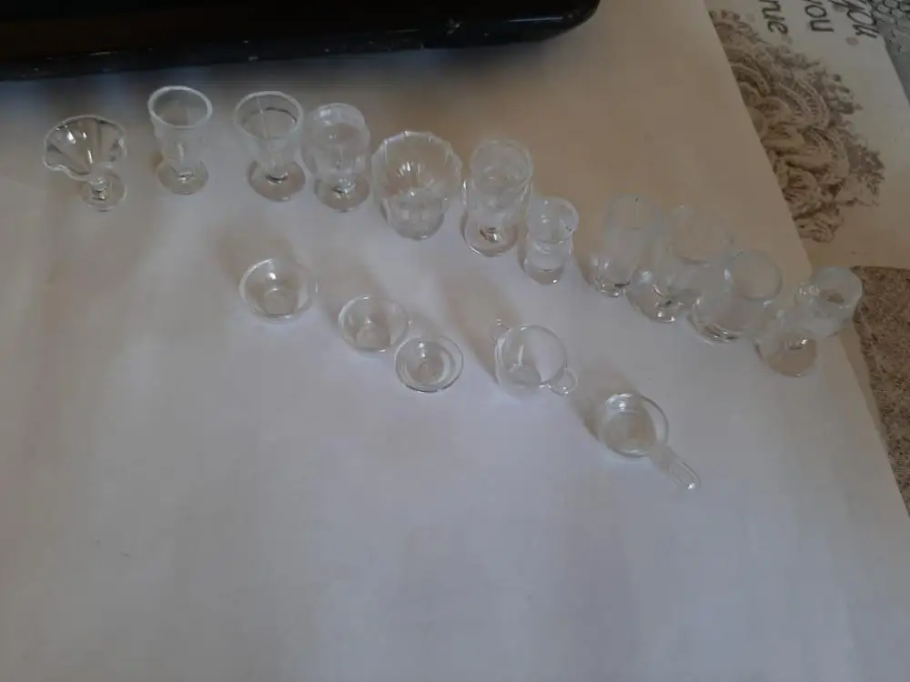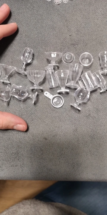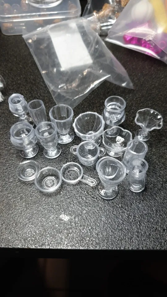 Существует широкий спектр маленьких прозрачных пластиковых стаканчиков, кувшин и т. Д., все разработано для кукольного домика. Они были в идеальном состоянии, поэтому очень рекомендую.
