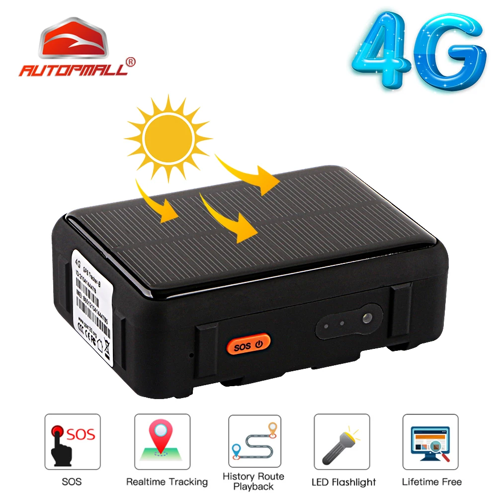Автомобильный GPS-трекер, 4G, с солнечной батареей, водонепроницаемый, для лодок, лошадей, пульт дистанционного управления, голосовой монитор SOS, светодиодный светильник, бесплатное приложение