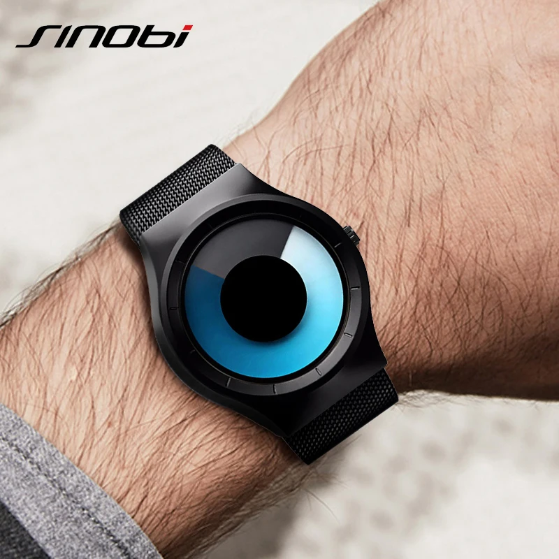 SINOBI Креативные мужские и женские кварцевые часы с сетчатым ремеш...