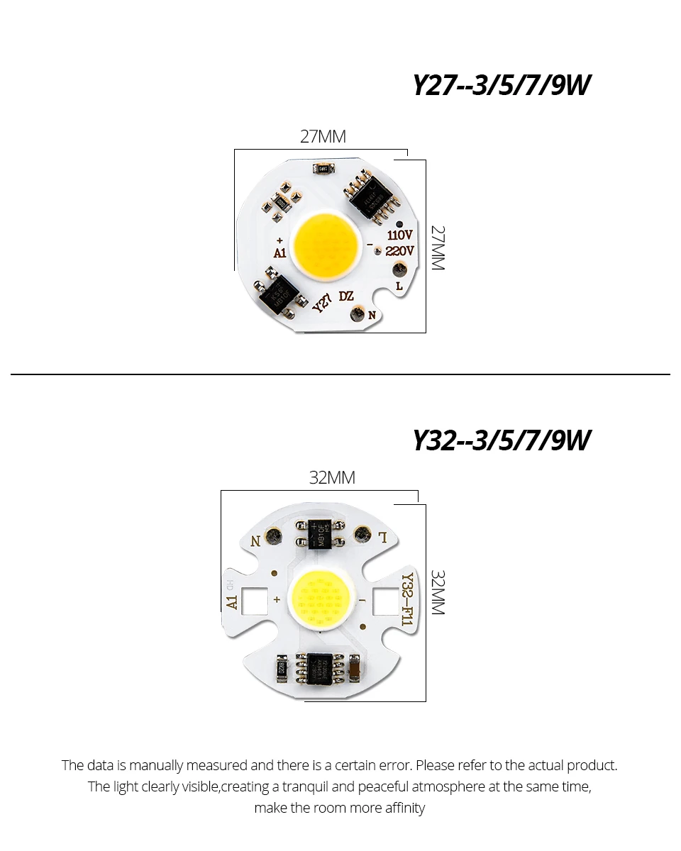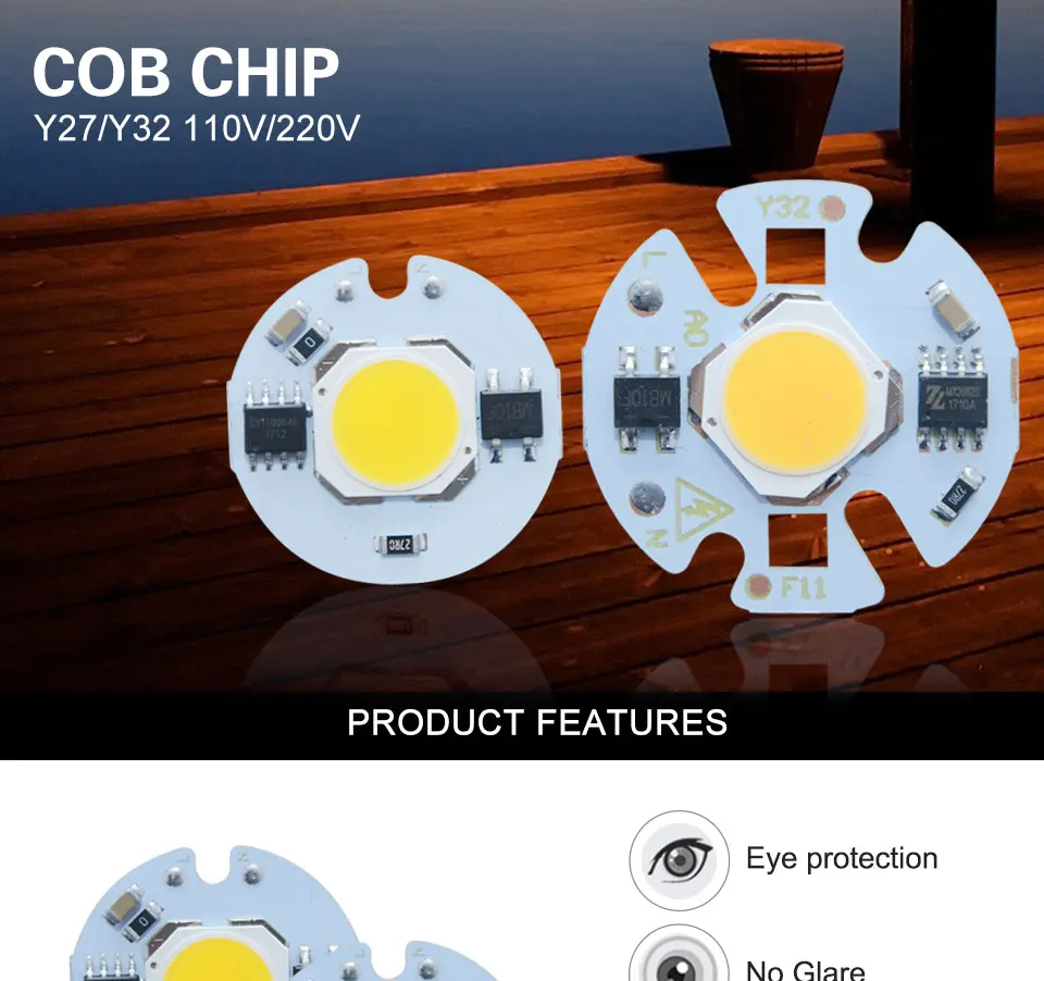 Светодиодный чип COB 3 Вт, 5 Вт, 7 Вт, 9 Вт, 220 В, 110 В, холодный теплый белый свет, Y27, Y32 чип COB, светодиодный бусины, не нужен драйвер для прожектора, прожектора сделай сам