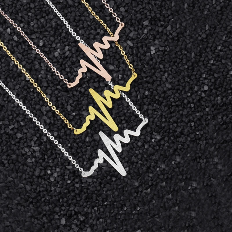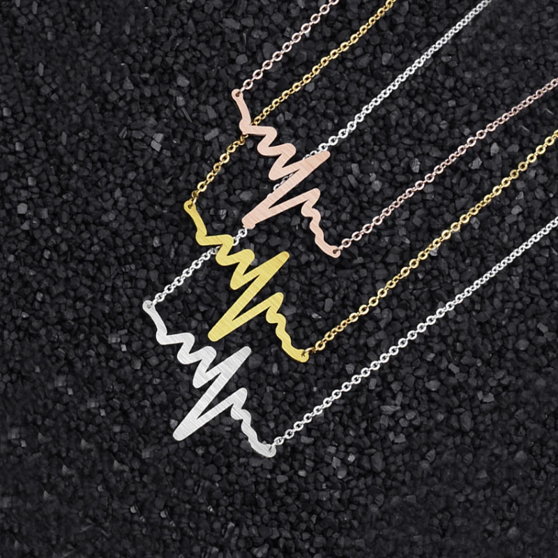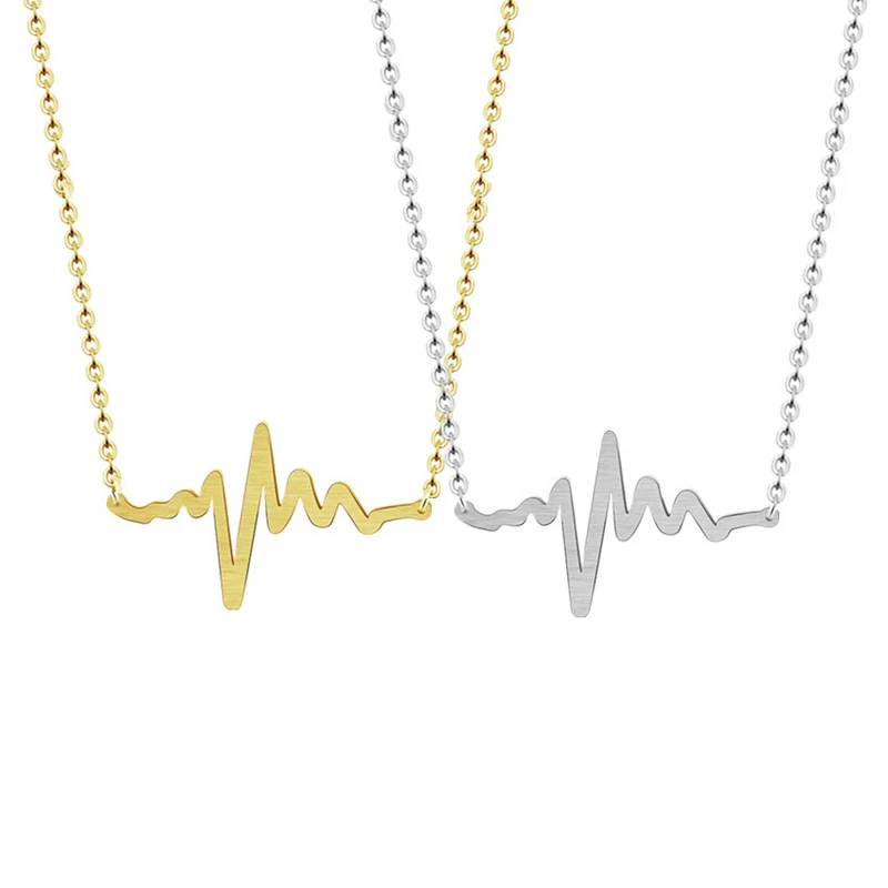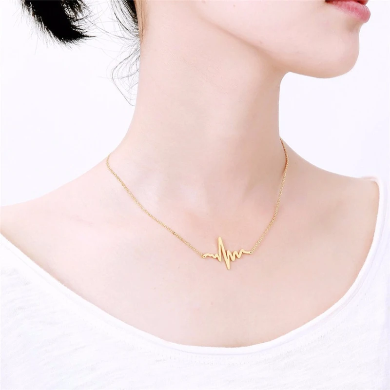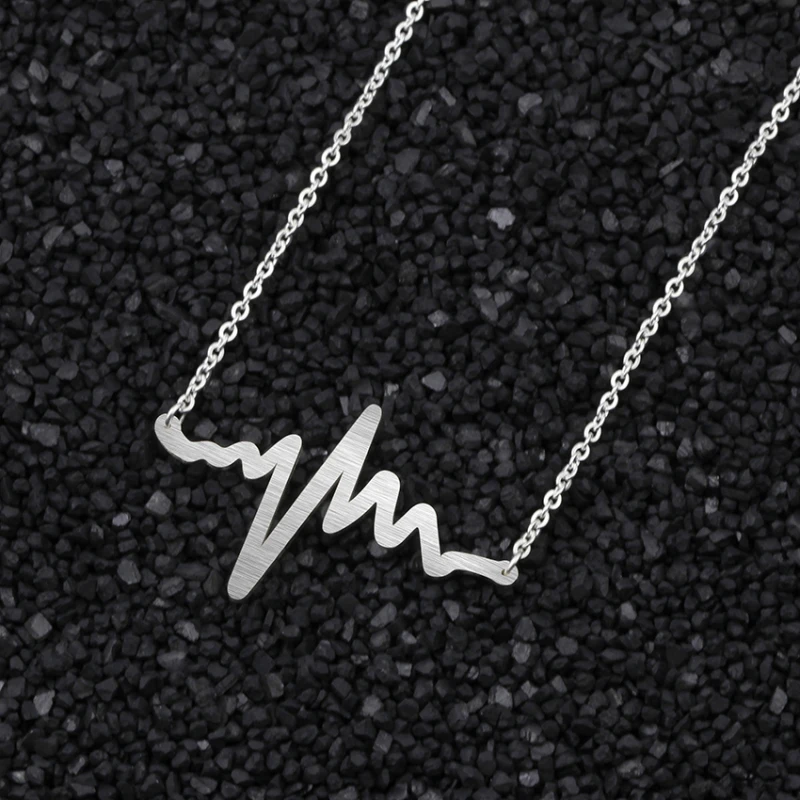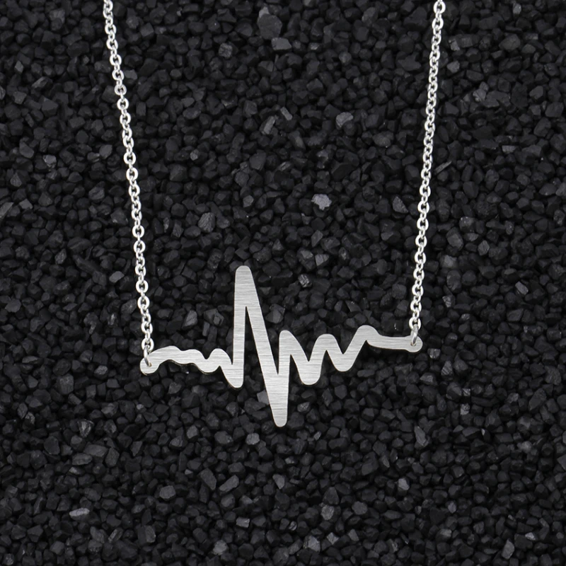 Stainless Steel Heart Beat Rhythm Necklace Charm Women EKG Lifeline...