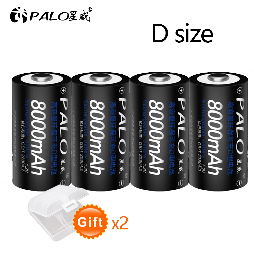 PALO 2 шт. оригинальный 1,2 V 8000mAh Ni-MH аккумулятор D размер ба...