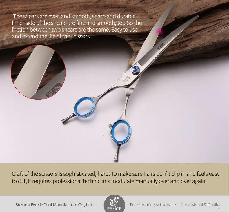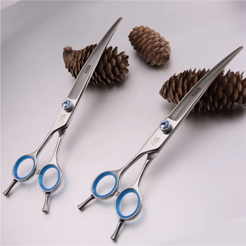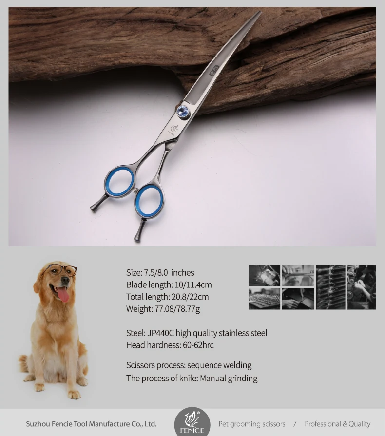 Fenice 8,0-дюймовые изогнутые ножницы для ухода за домашними животными, Япония 440C для собаккошек, ножницы для стрижки волос, принадлежности для ухода