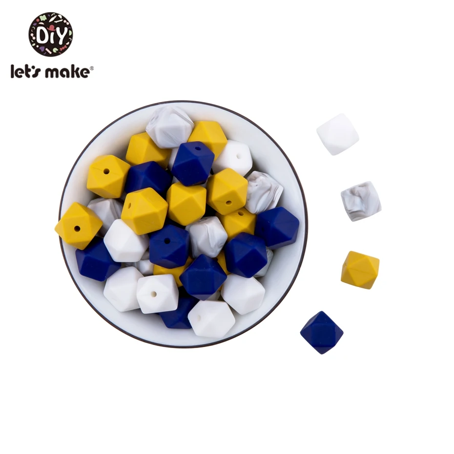20 шт., шестигранные силиконовые бусины для прорезывания зубов, 14 мм