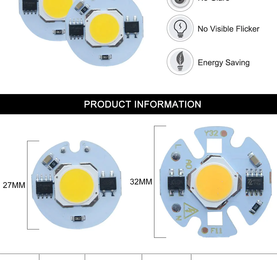 Чип светодиодный, 220 В, 110 В, 3 Вт, 5 Вт, 7 Вт, 9 Вт, Y27, Y32