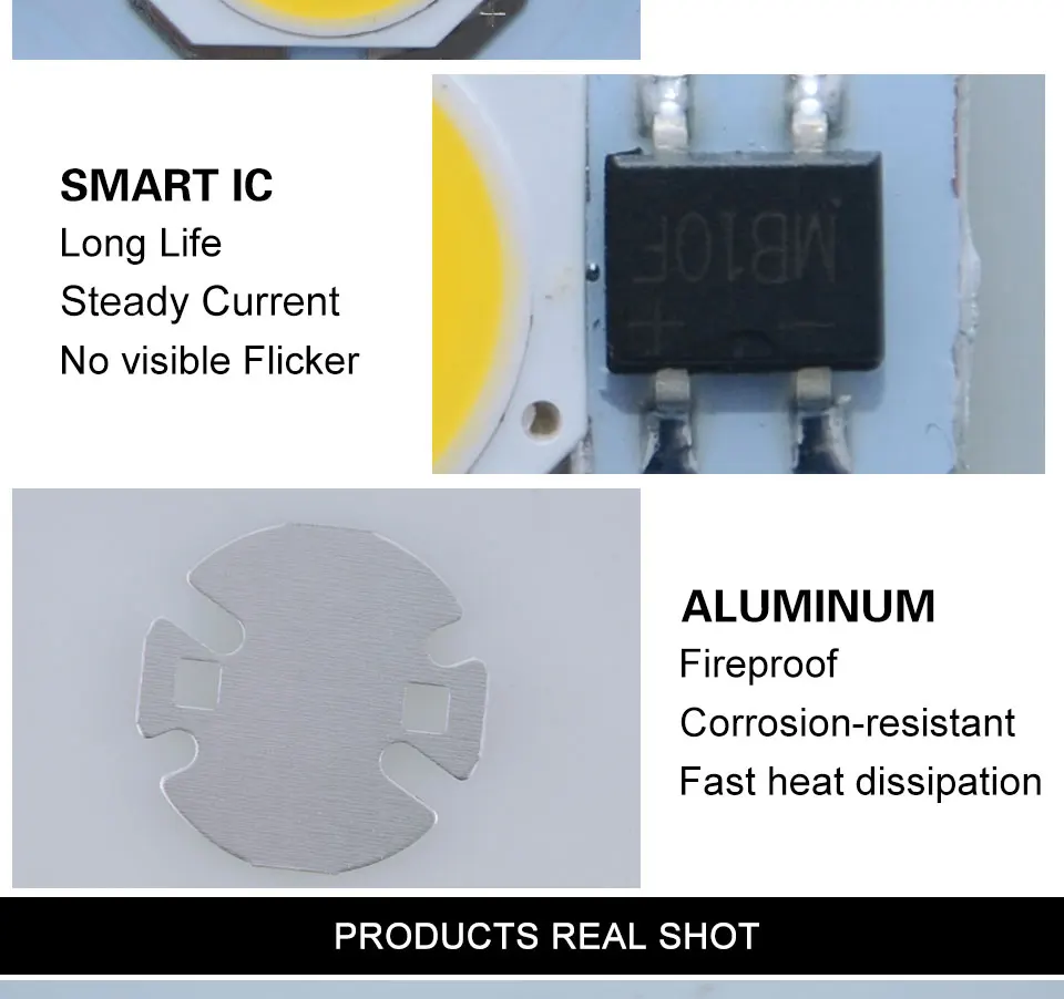 Описание товара: Название: светодиодный чип COB Характеристики: Smart IC, не neet driver Напряжение: 220 В 110 В Мощность: 9 Вт 7 Вт 5 Вт 3 Вт Диаметр: 27 мм или 32 мм Светильник Цвет: Холодный белый: 6000-6500K Теплый белый: 2800-3200K Применение: прожектор DIY прожектор