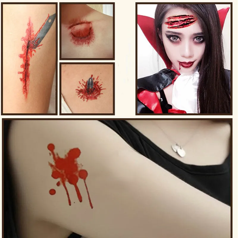 Новая водостойкая временная татуировка наклейка Хэллоуин ужас рана Реалистичная кровь травма поддельные шрам кровавый дизайн Татуировка наклейка