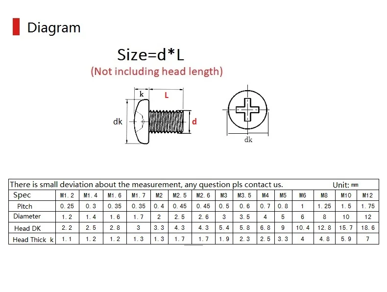 Стандарты на винты имеют допуски плюс-минус, Пожалуйста, знайте это, спасибо!