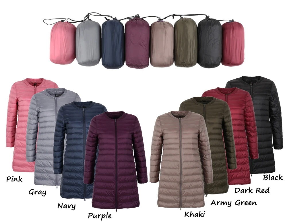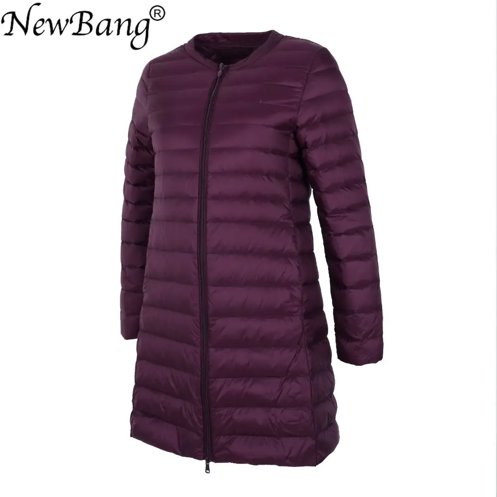 Куртка NewBang Женская длинная ультра легкая пуховая, пальто без воротника на молнии, верхняя одежда с перьями, облегающая ветровка