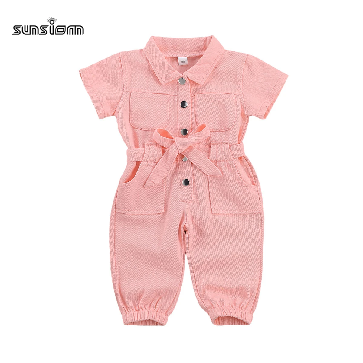 Комбинезон детский джинсовый, короткий рукав, с отложным воротником и карманами