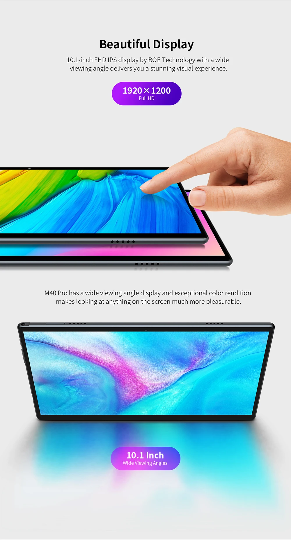 Товар получил, доставка быстрая, описанию соответствует, вместо защитного стекла положили пленку. Продавец общительный, рекомендую. Для своей цены отличный планшет, брал в темную, обзоров на русском языке нет ,не пожалел, очень доволен. M40 недавно вышел, протестирую дополню, пока все нормально работает.