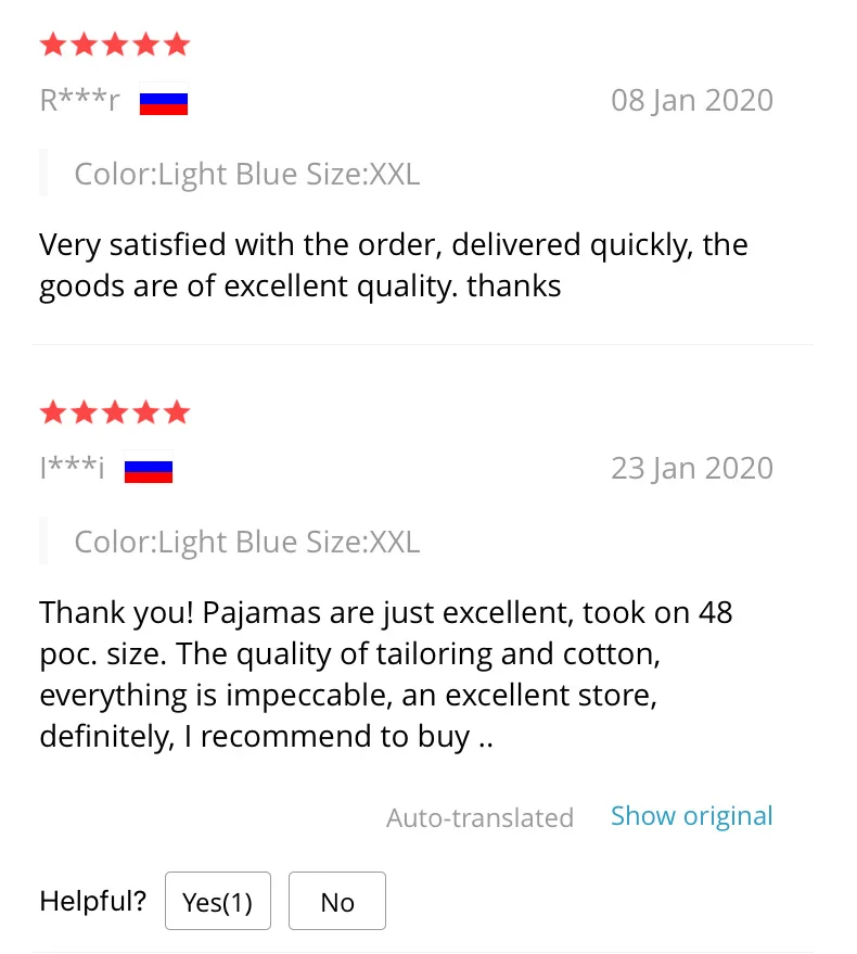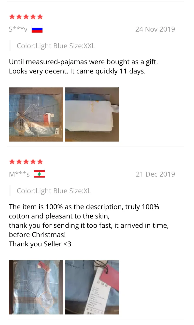 Пижаму купила отцу на рождество. Пришла за пару недель. Качество как он говорит отличное (живу в другой стране и сама не видела). Сам он худой и высокий - примерно 175 рост. пижама села свободно и сидит хорошо. советую!