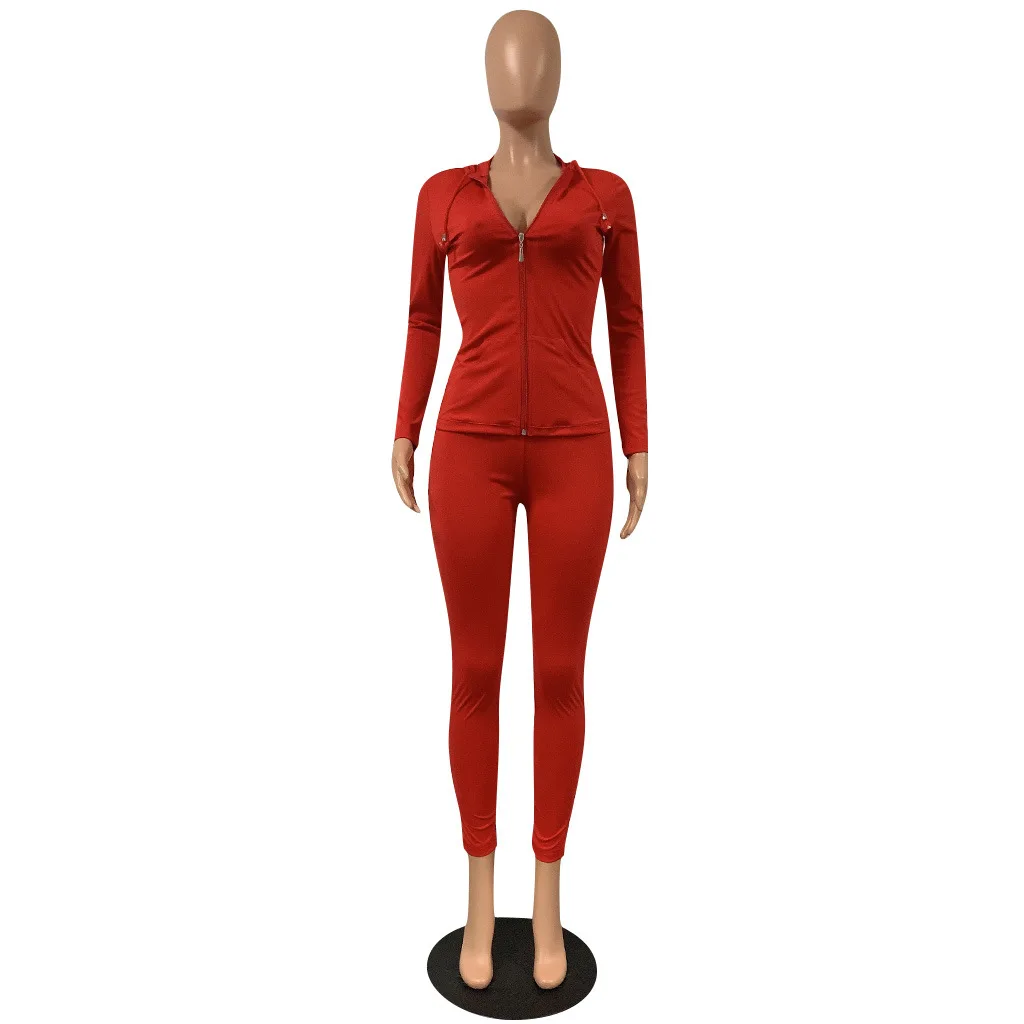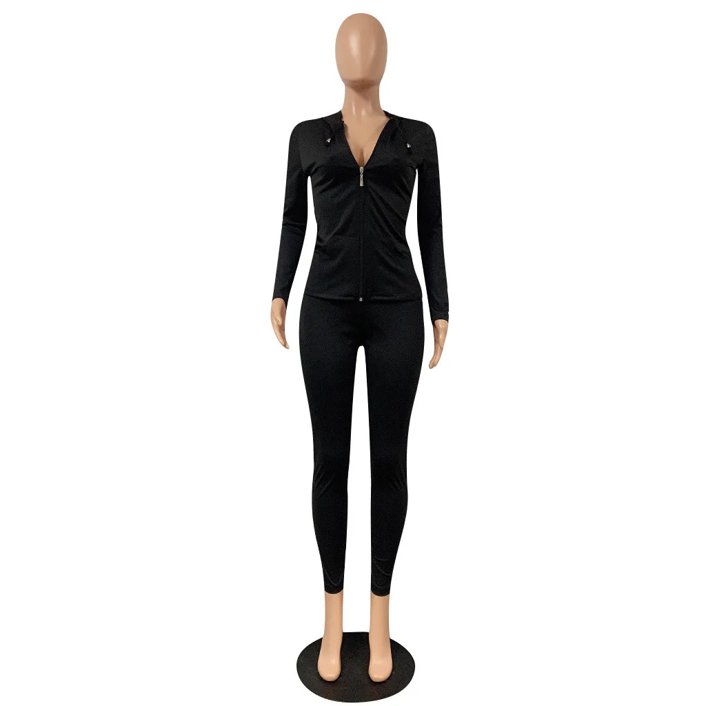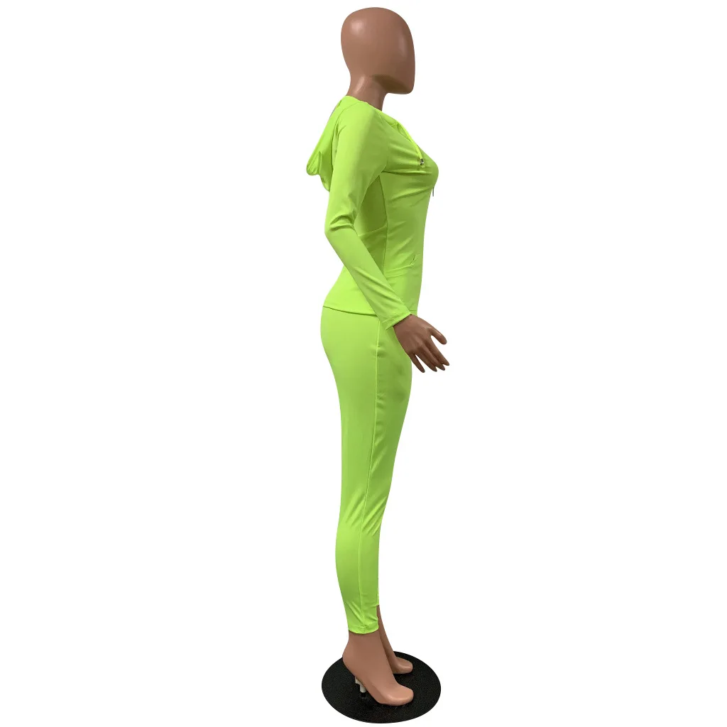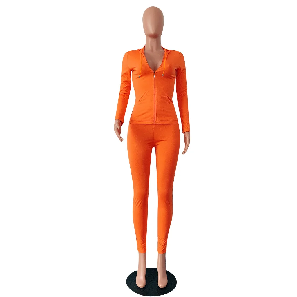 Модный комплект из двух предметов с капюшоном, женский топ на молнии и штаны, спортивный топ с длинными рукавами, женские наряды, однотонные, 7 цветов, размера плюс