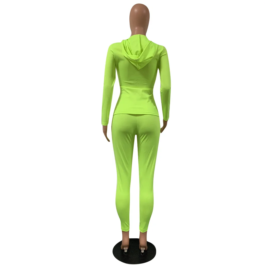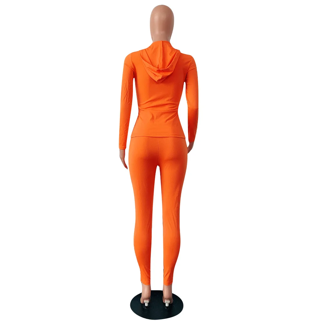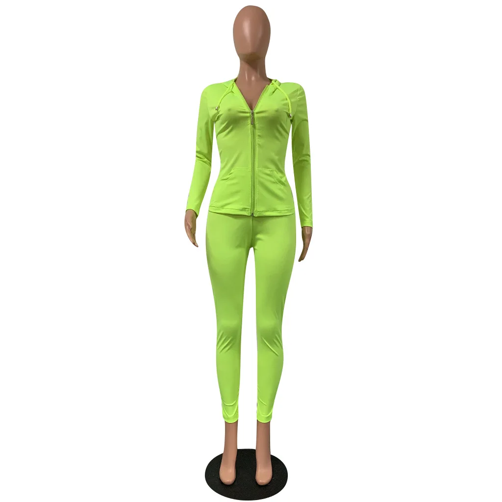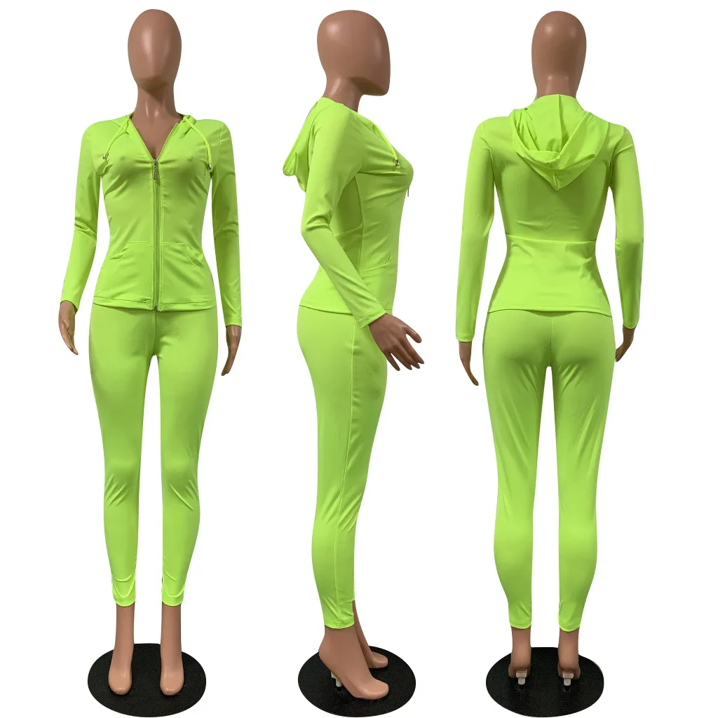 Модный комплект из двух предметов с капюшоном, женский топ на молнии и штаны, спортивный топ с длинными рукавами, женские наряды, однотонные, 7 цветов, размера плюс