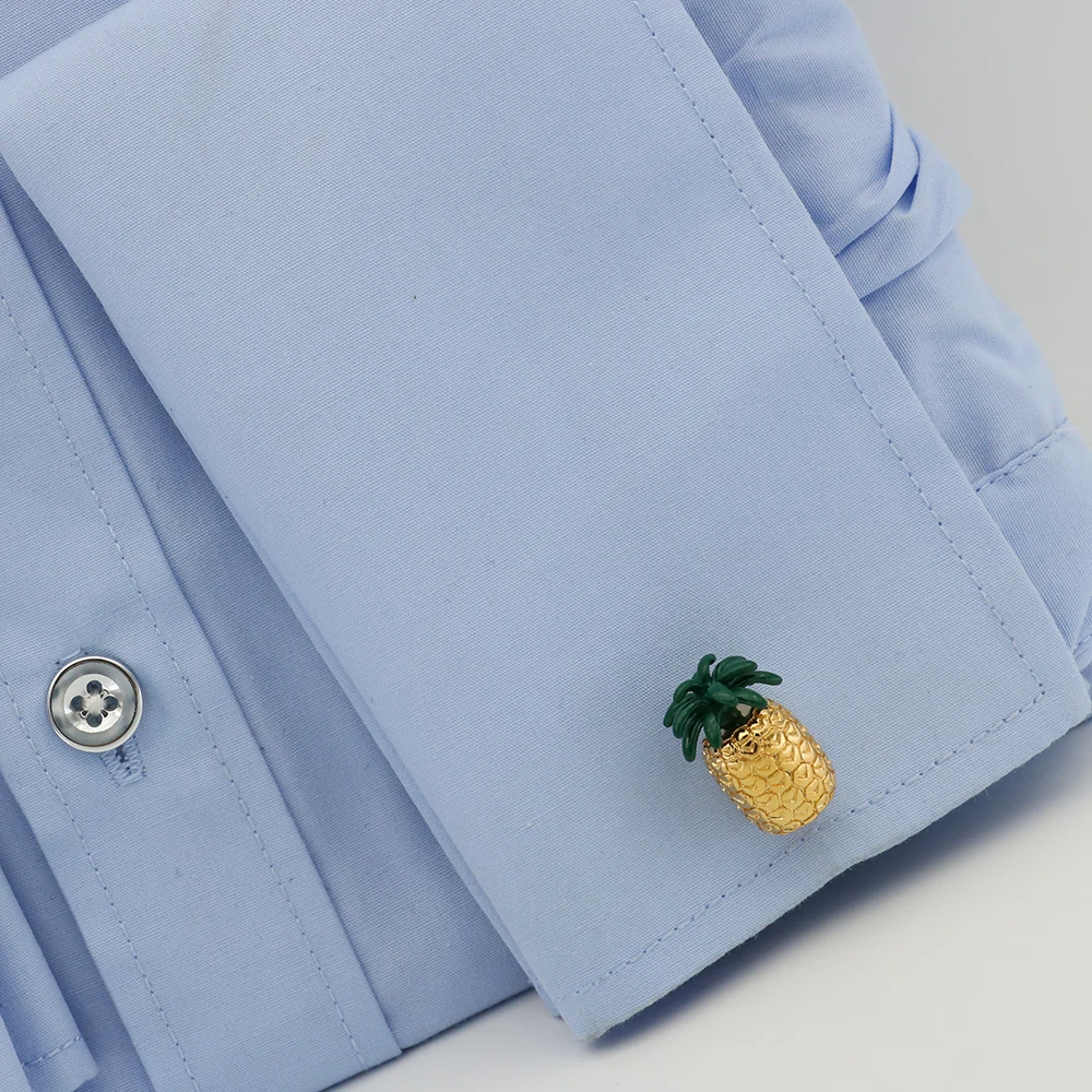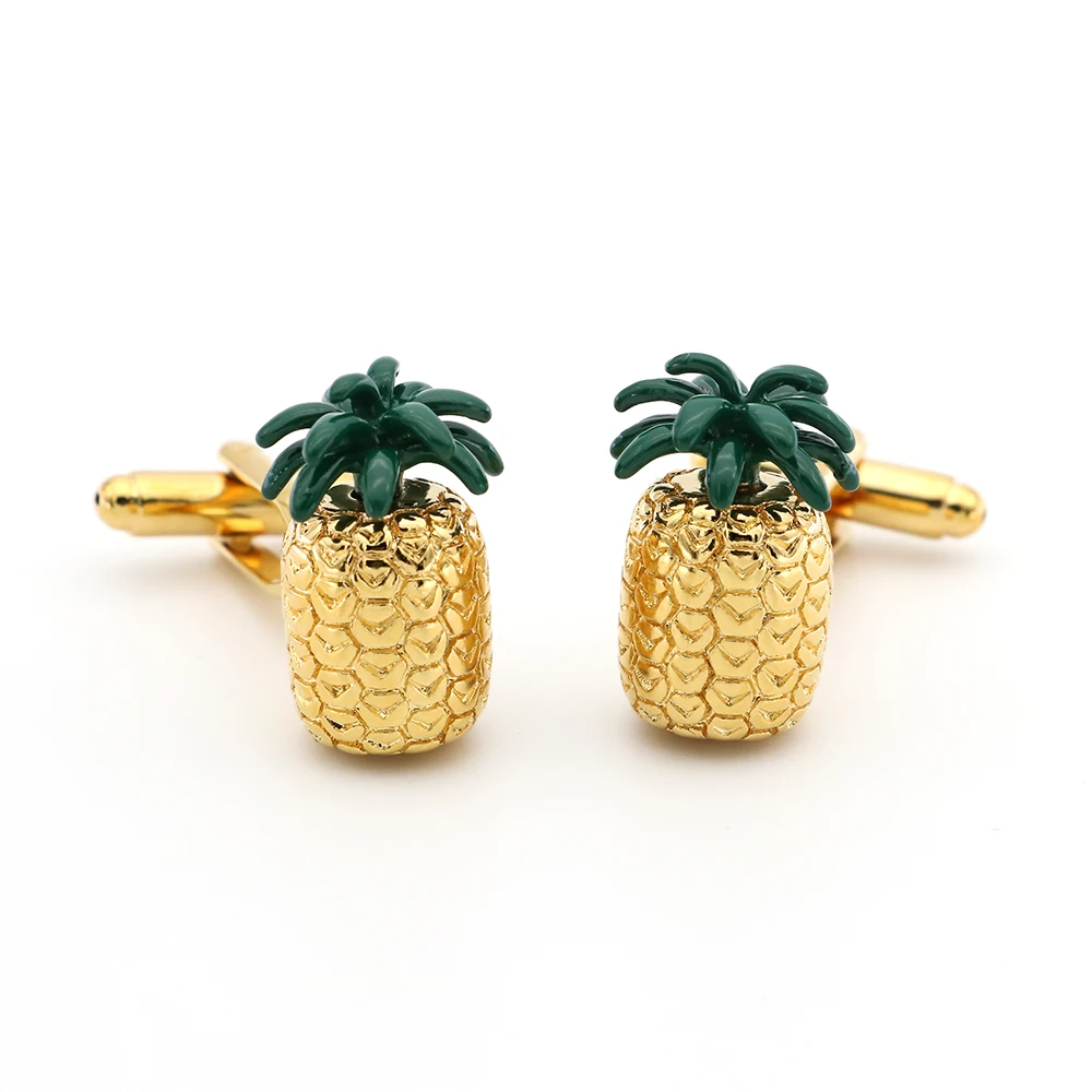 Запонки в виде ананаса для мужчин, запонки золотого цвета из качественной латуни с фруктовым дизайном, оптом и в розницу