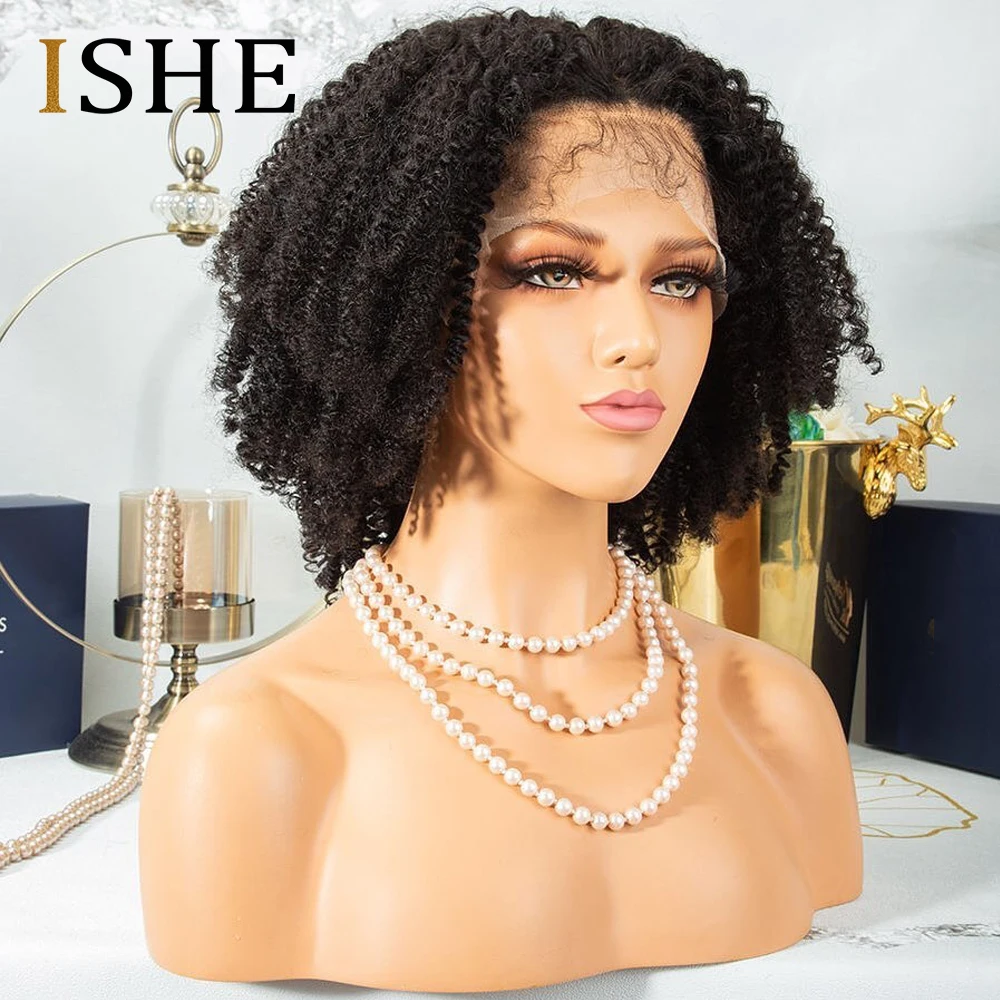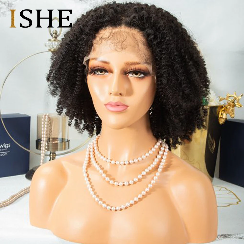 Афро кудрявые вьющиеся парики 13x4, парики из человеческих волос на сетке спереди, предварительно выщипанные безклеевые бразильские волосы Remy для женщин, черные 150 плотность ISHE