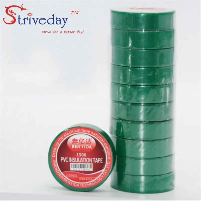 10 шт.лот зеленый 16 мм в ширину 10 м длинная электрическая лента высокотемпературная теплоизоляция водонепроницаемая ПВХ DIY лента