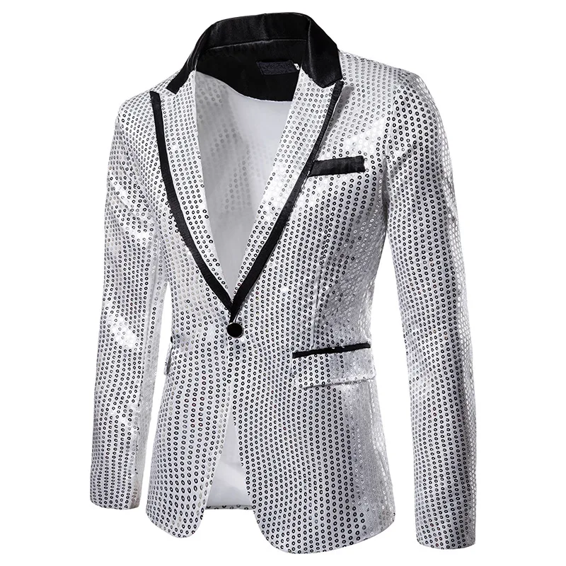 Мужской блейзер для вечеринки с блестками, повседневный костюм с оч...