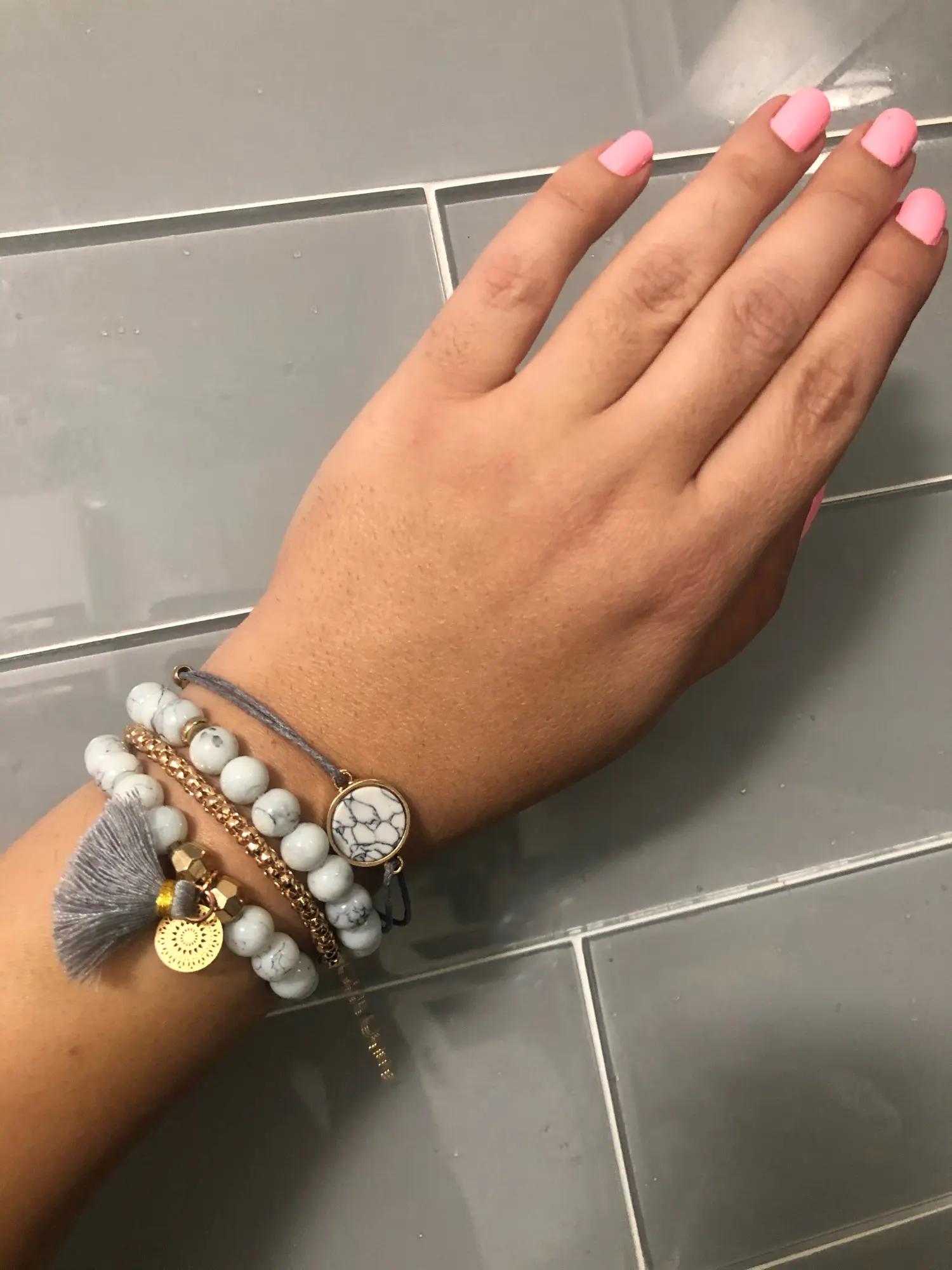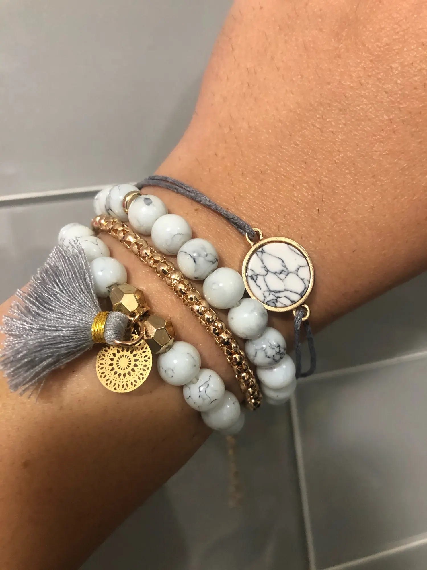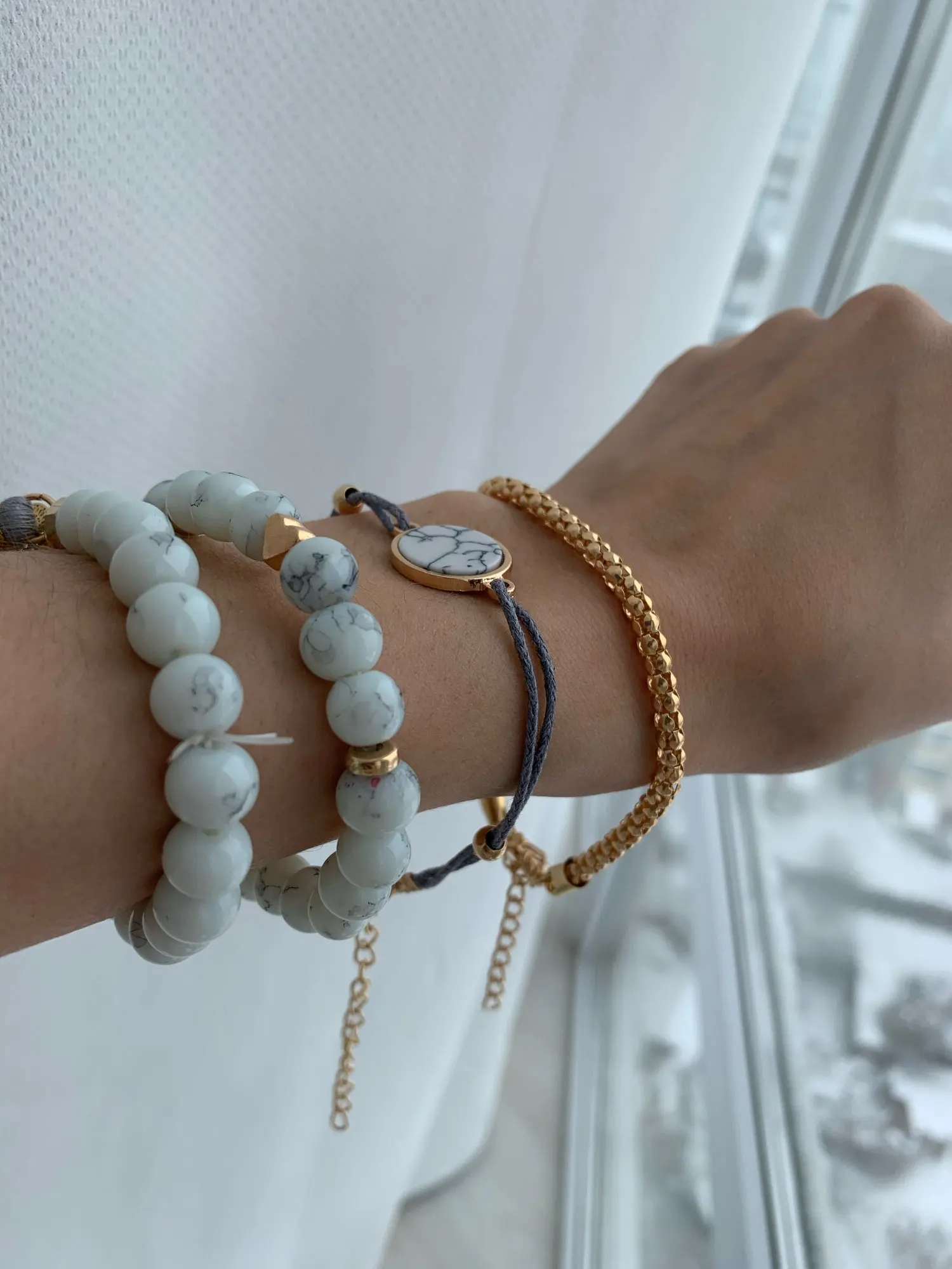 Выглядит довольно дешево. Только браслет из белого камня действительно приятный