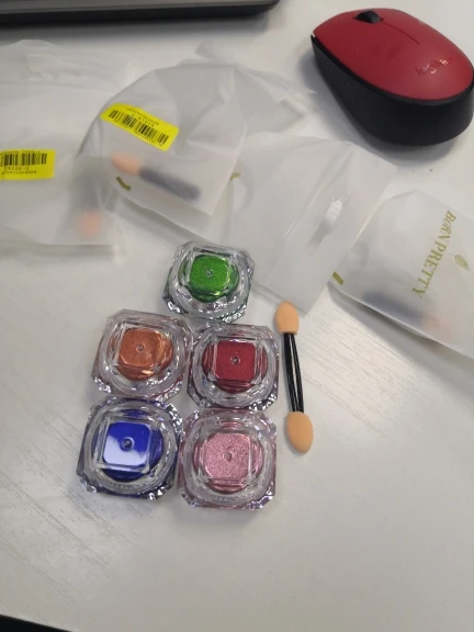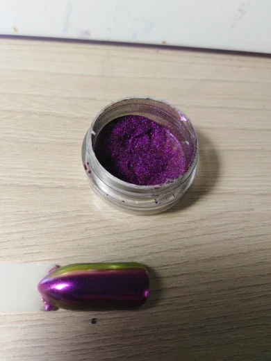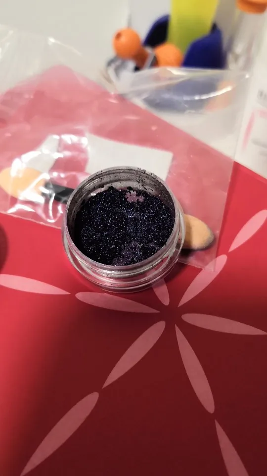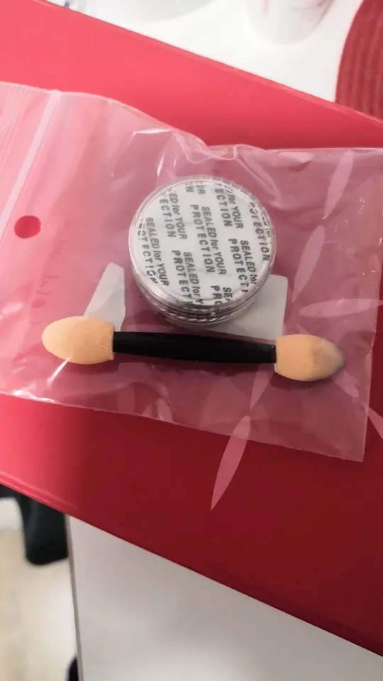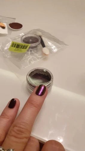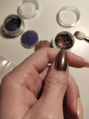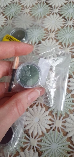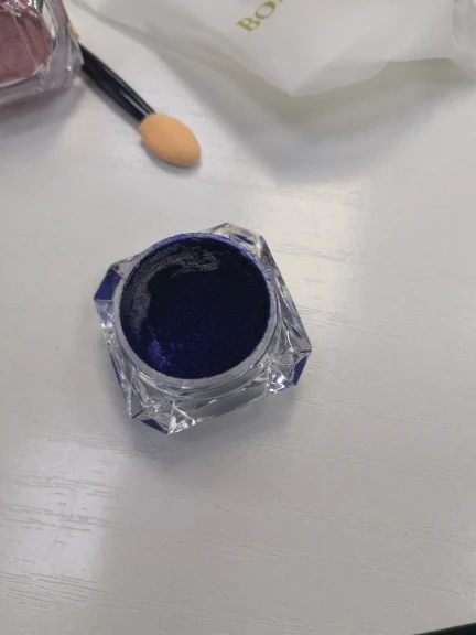 Вау!!! не ожидала что это так красиво!!! есть кисточка специально чтоб втирать, я думала пришлет без кисточки. Только жаль что порошка мало, где-то половина баночки всего, а она и так маленькая. Заказывала сине-фиолетовый , довольна! Шло долго где-то 3 месяца. С продавцом не общалась