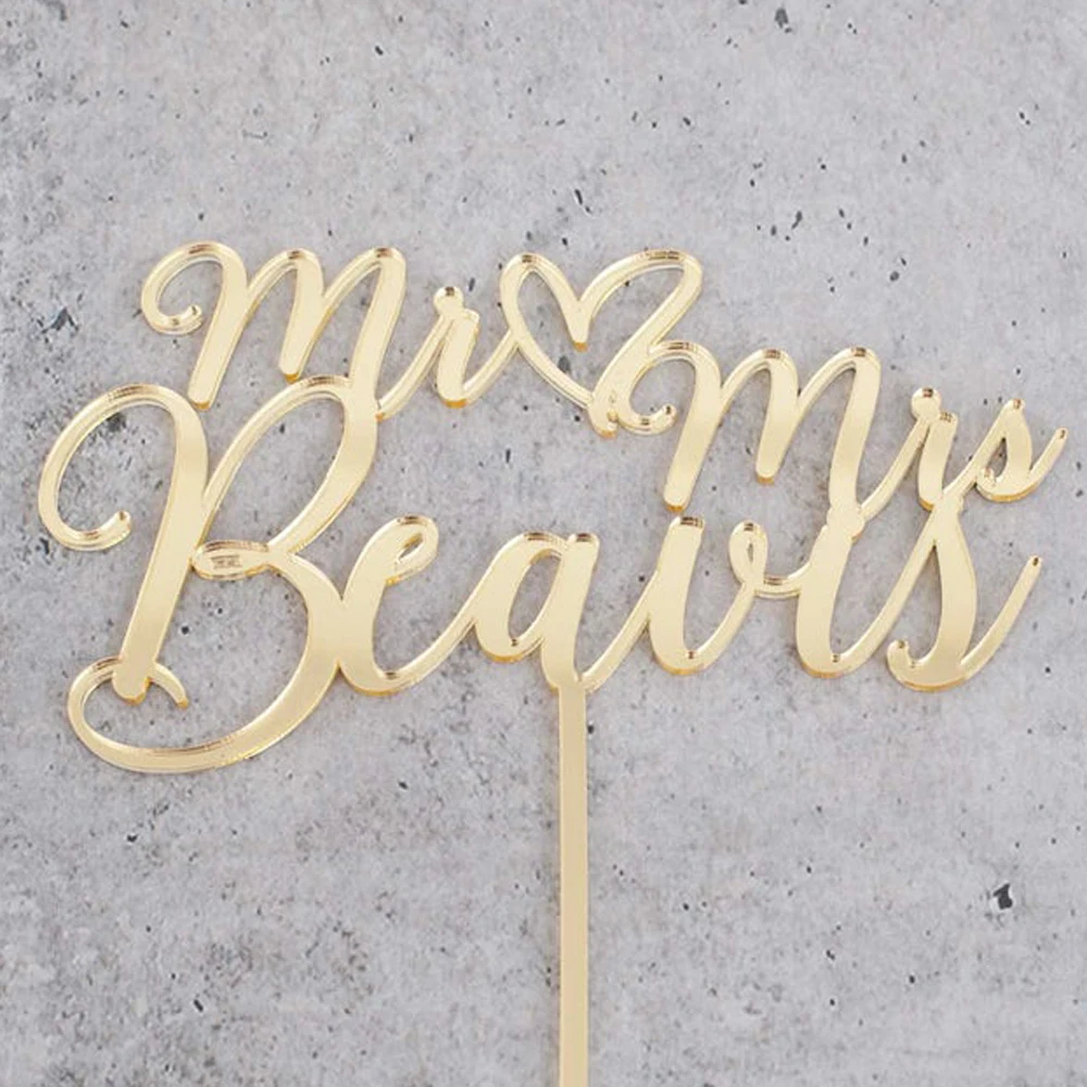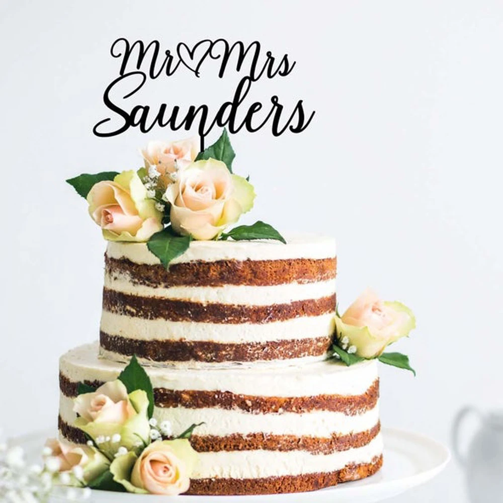 Пользовательские Mr Mrs фамилия свадебный торт Топпер с сердцем персонализированные свадебные украшения партии юбилей аксессуары для помолвки