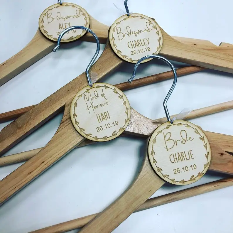 Индивидуальная Свадебная Вешалка с листовой биркой, вешалка для невесты, вешалка для подружек невесты, деревянная вешалка для свадебного платья