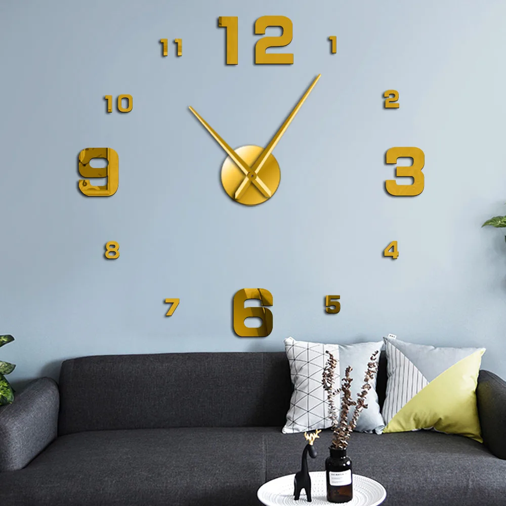 Большие бескаркасные настенные часы DIY, бесшумные зеркальные наклейки с цифрами, современные гигантские настенные часы, не тикающие, для гостиной, спальни, кухни