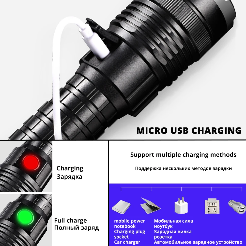 Сверхмощный светодиодный фонарик XHP50, масштабируемый тактический фонарик, перезаряжаемый водонепроницаемый фонарь, сверхяркий фонарь от батареи 26650