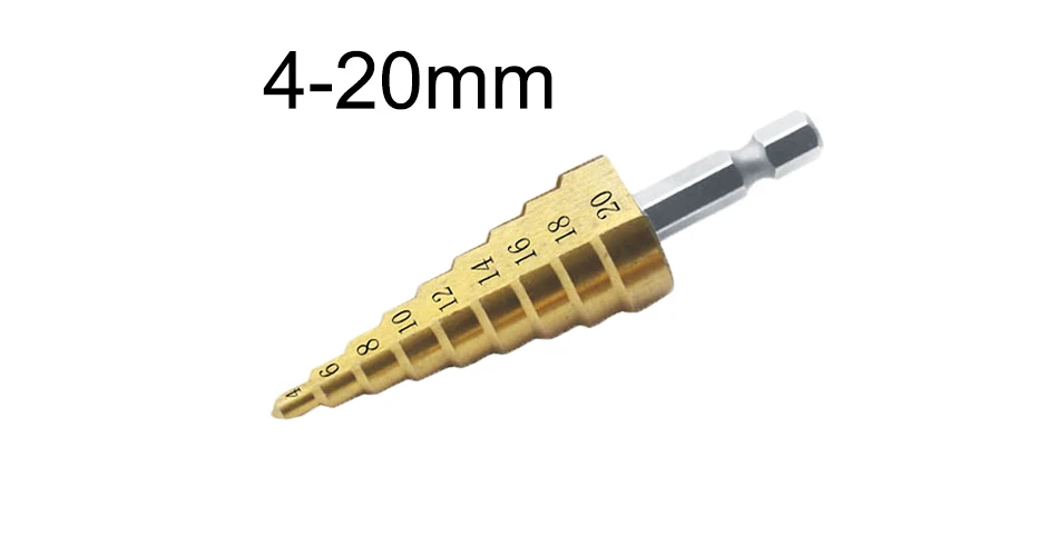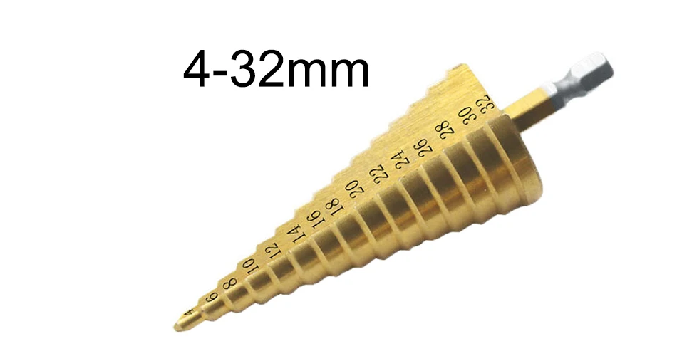 Лестничное сверло Geoeon из быстрорежущей стали, 4-32 мм, конусное ступенчатое сверло для деревообработки, сверло с титановым покрытием, A95