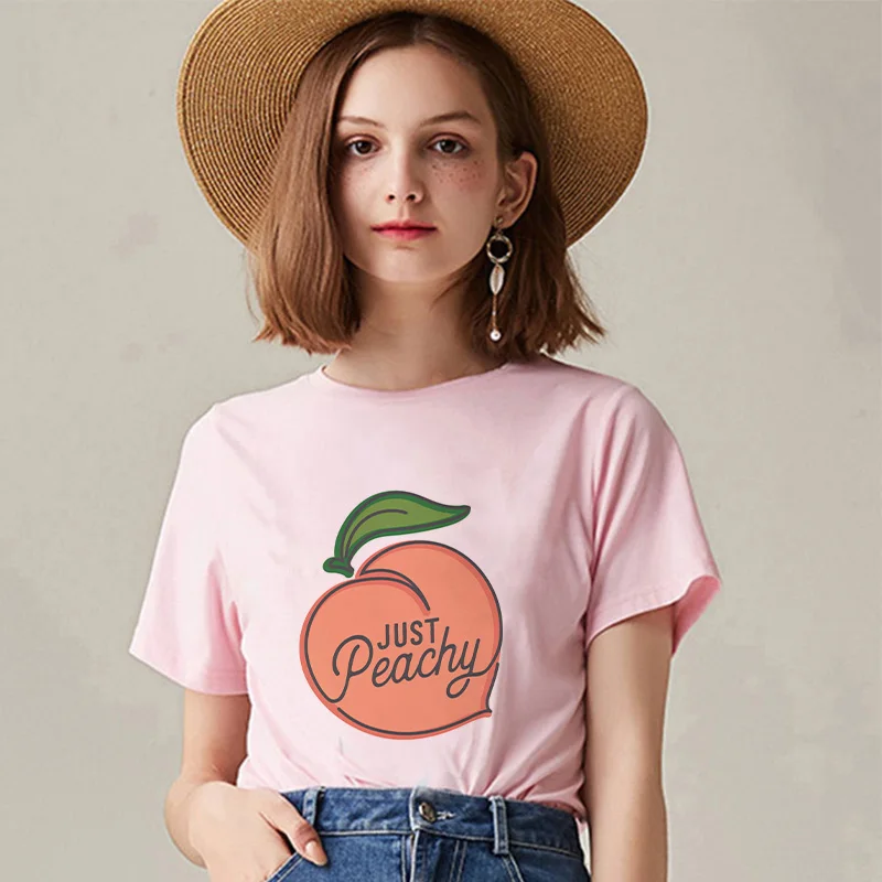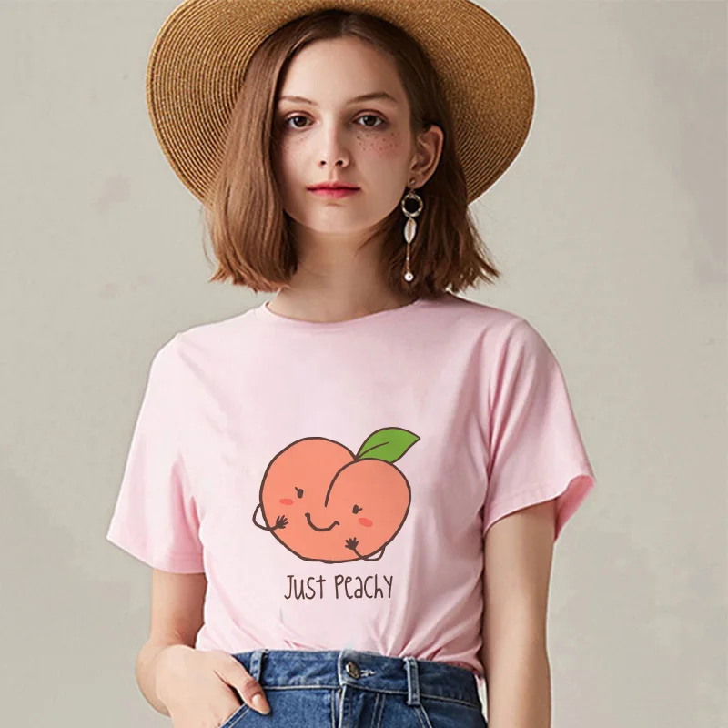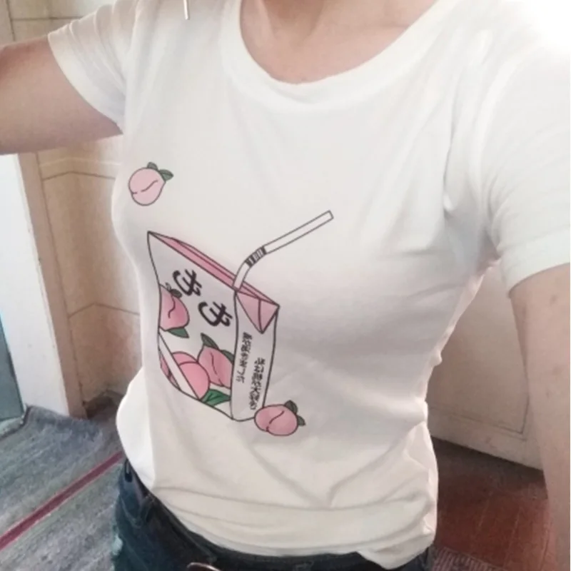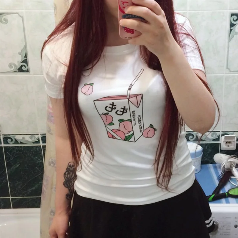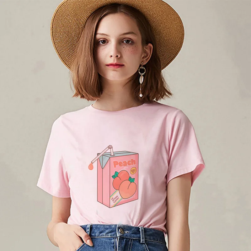 Женская футболка в стиле Харадзюку, розовая Летняя Повседневная футболка с рисунком персикового сока в японском стиле
