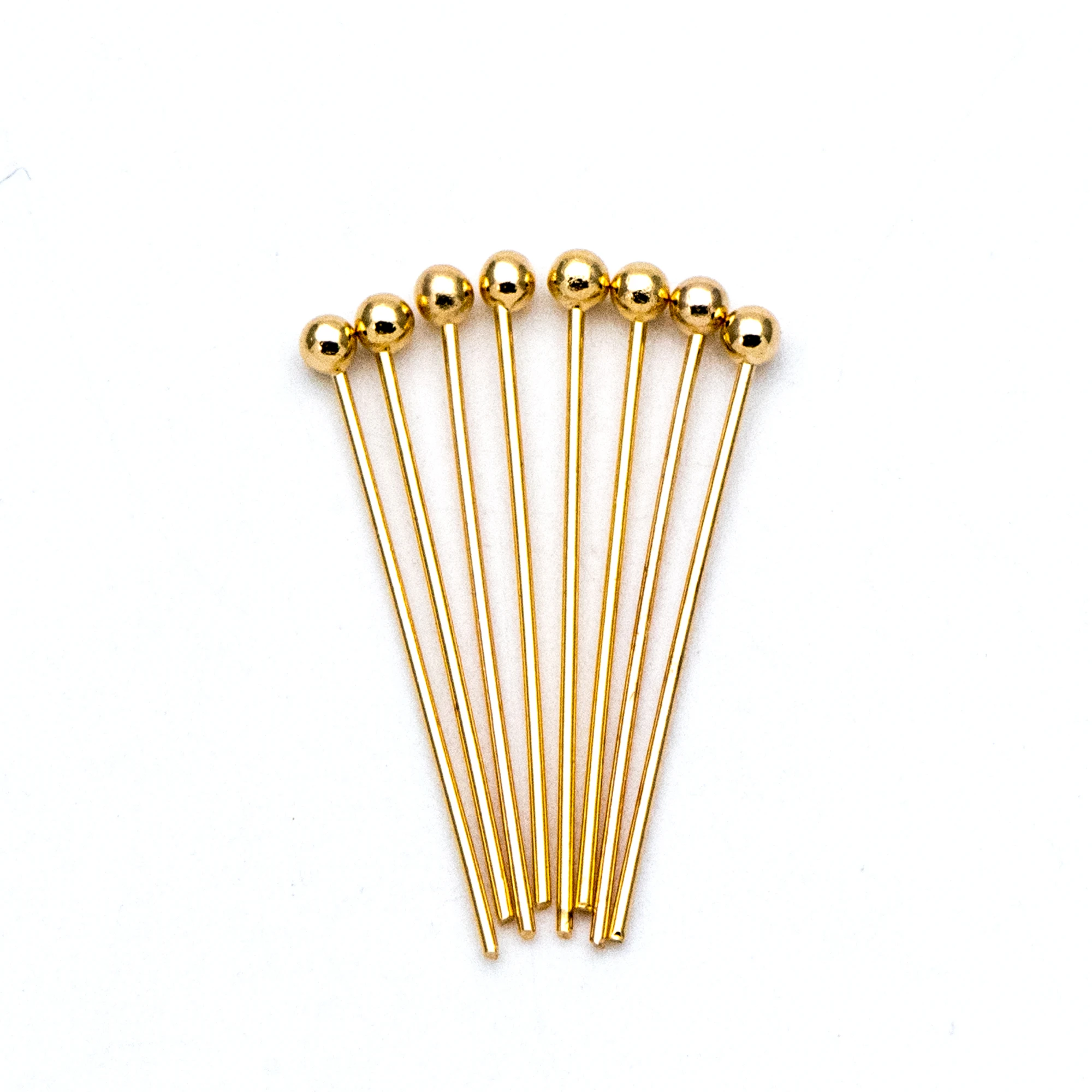 Высокое качество, настоящая позолота, латунные шариковые шпильки, цвет не легко тускнеет, не содержит свинец и никель. Размеры: 20 мм в длину, 0,5 мм (24 Gauge) толщиной/шаровое окончание 1,7 мм Количество: 100 шт. Цвет: золотой, серебряный, розовое золото Материал: латунь