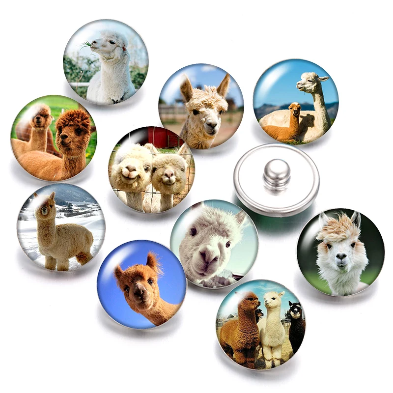 Животные Альпака желтовато-коричневый утка енот 18 мм кнопки 10 шт. круглые фото кабошоны разрисованные изделия из стекла стиль для кнопки ювелирные изделия