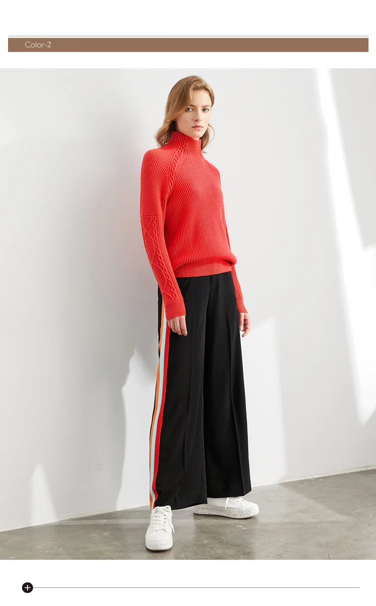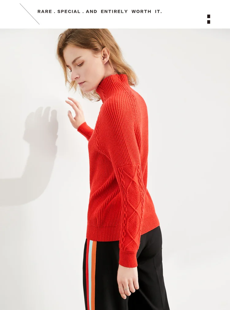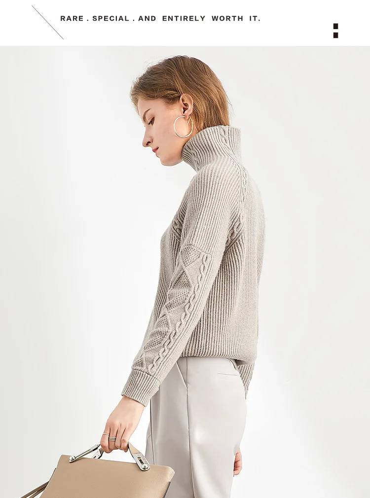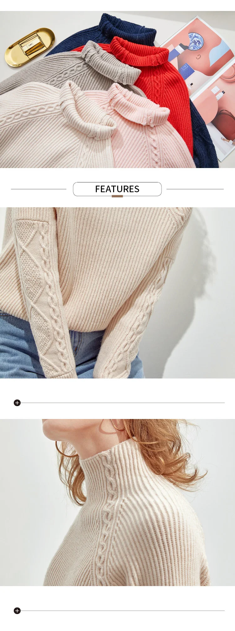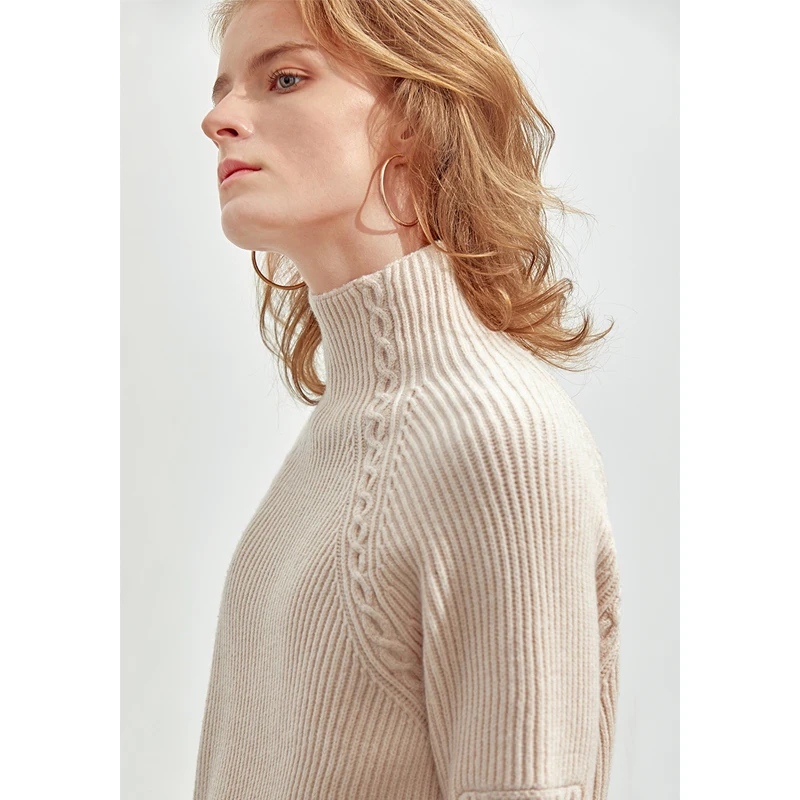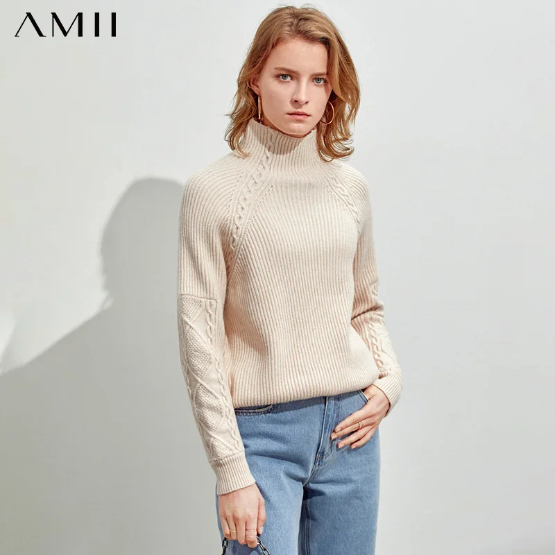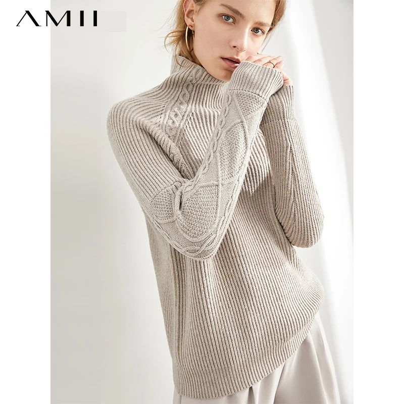 Женский минималистский свитер Amii, осенне-зимний пуловер с высоким воротником и льняным рисунком, топы 11920178