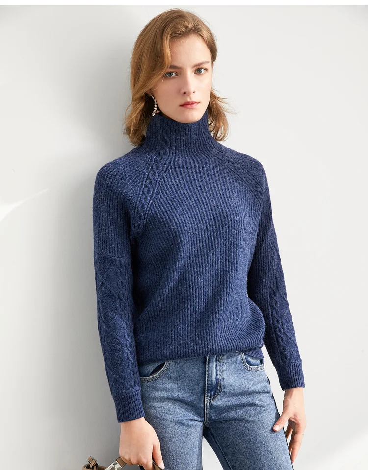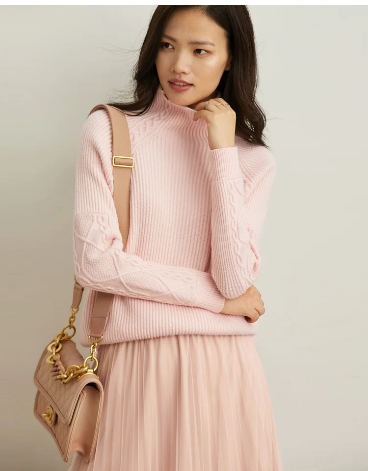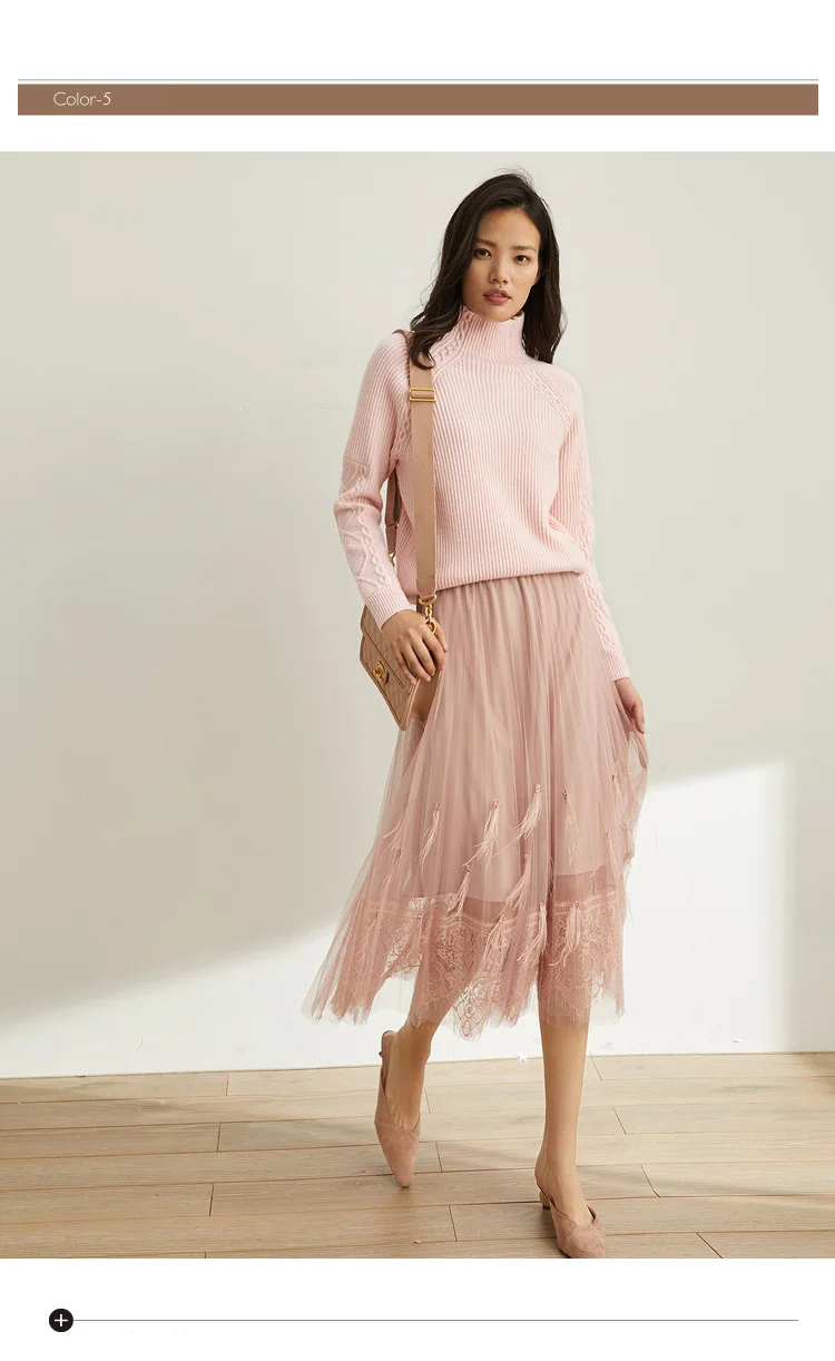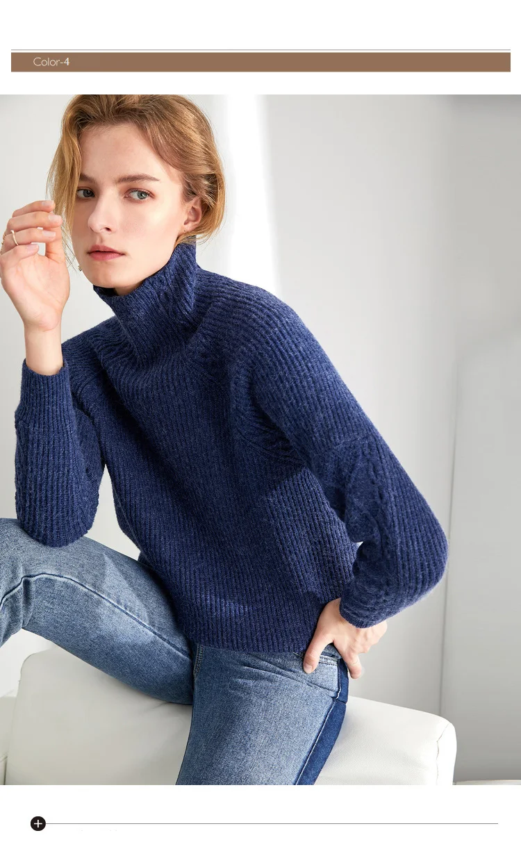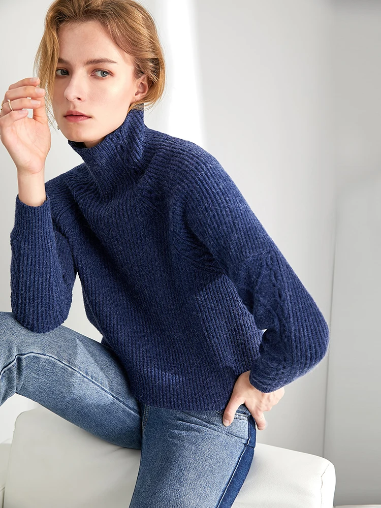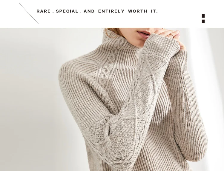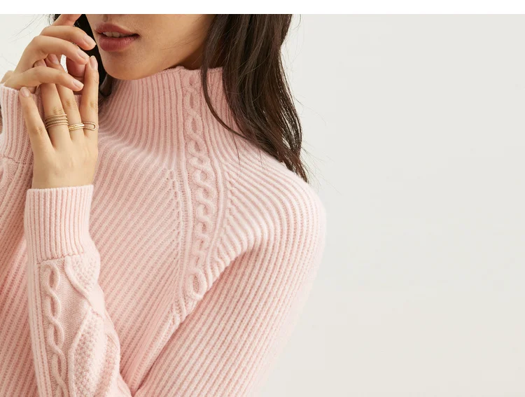 Женский минималистский свитер Amii, осенне-зимний пуловер с высоким воротником и льняным рисунком, топы 11920178
