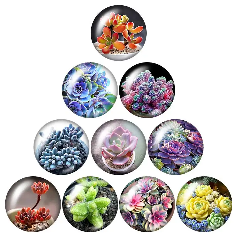 Цветы, лаванда, суккуленты, розы, 18 мм, кнопки, 10 шт., Смешанные Круглые Стеклянные Кабошоны для фотографий, стильные ювелирные изделия