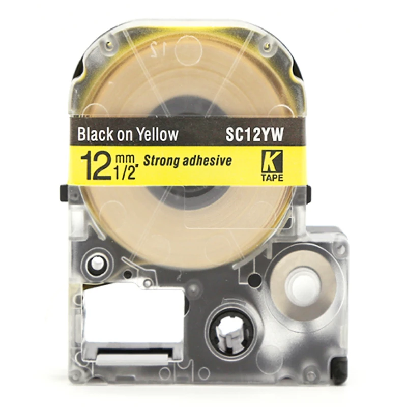 Лента для принтеров этикеток Epson KingJim, черная на желтом, 12 мм