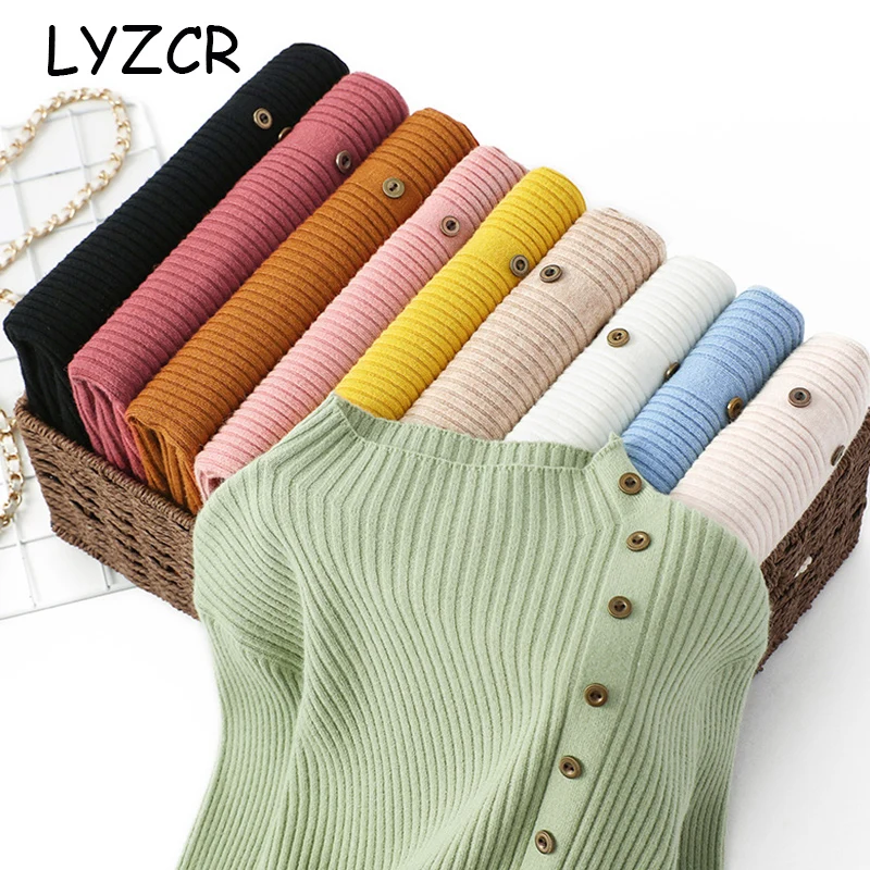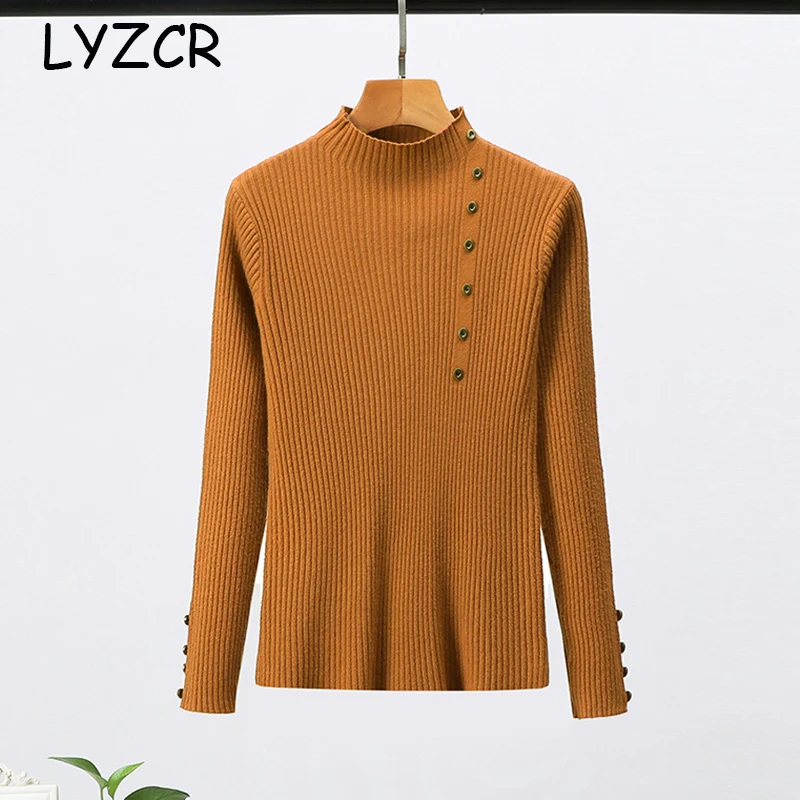 Осенне-зимний свитер с воротником-хомутом на пуговицах, Женский облегающий базовый вязаный пуловер, женские свитера, джемпер для женщин, зимние женские рубашки