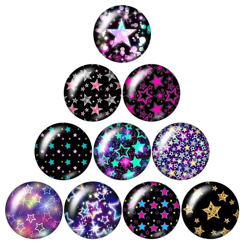 Осветительные точки, сердца, звезды, блестящие кнопки 18 мм, 10 шт., Смешанные Круглые Стеклянные Кабошоны для фото, стильные ювелирные изделия для кнопок
