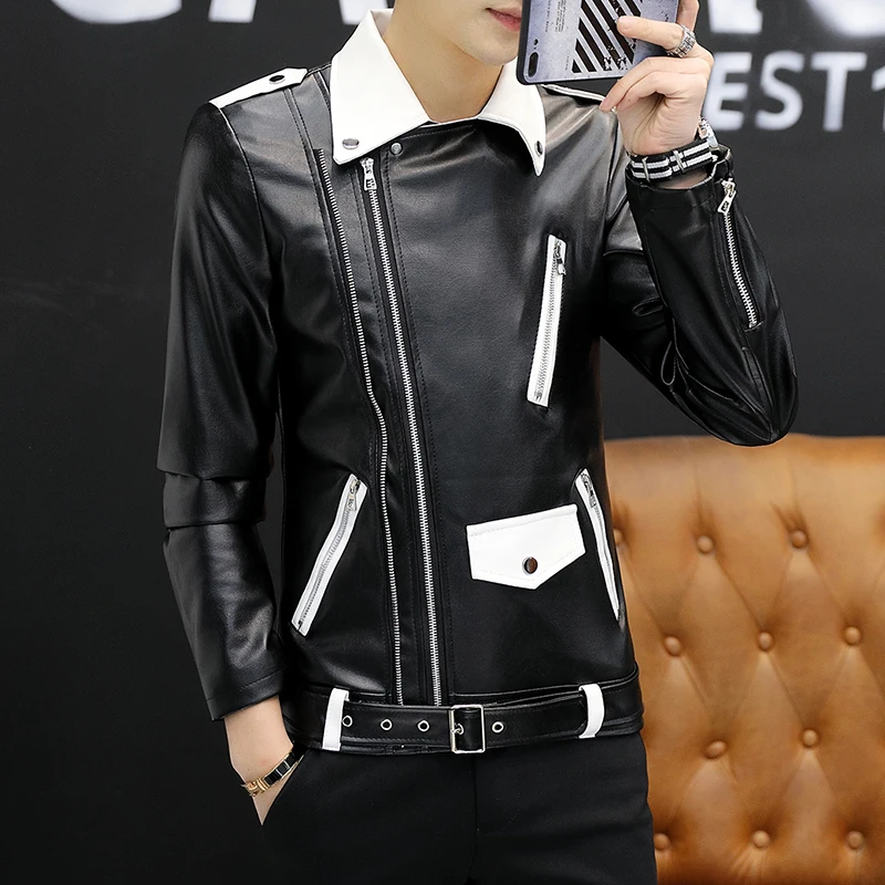 2019 Новый Дизайн мотоциклетная куртка-бомбер кожаный ремень куртка мужская осень отложной воротник приталенная мужская кожаная куртка пальто