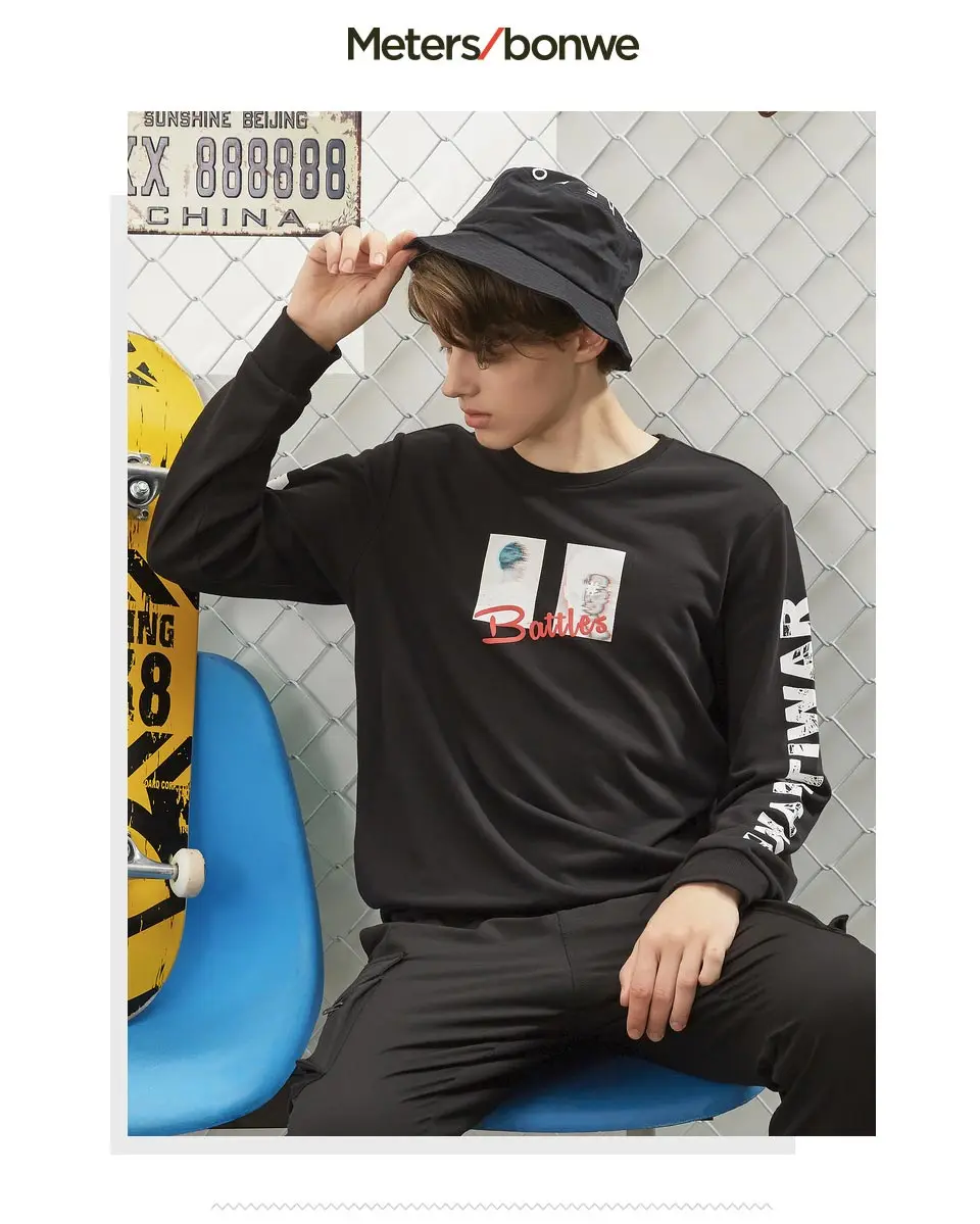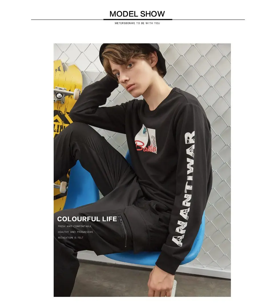 Мужская толстовка с принтом Metersbonwe, модная Толстовка с принтом хип-хоп для скейтборда, Осень-зима 2019
