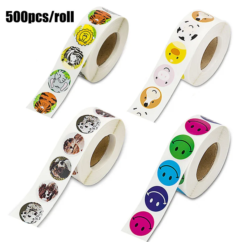 Наклейки с животными, 1 дюйм, 500 шт., стикер для канцелярских товаров